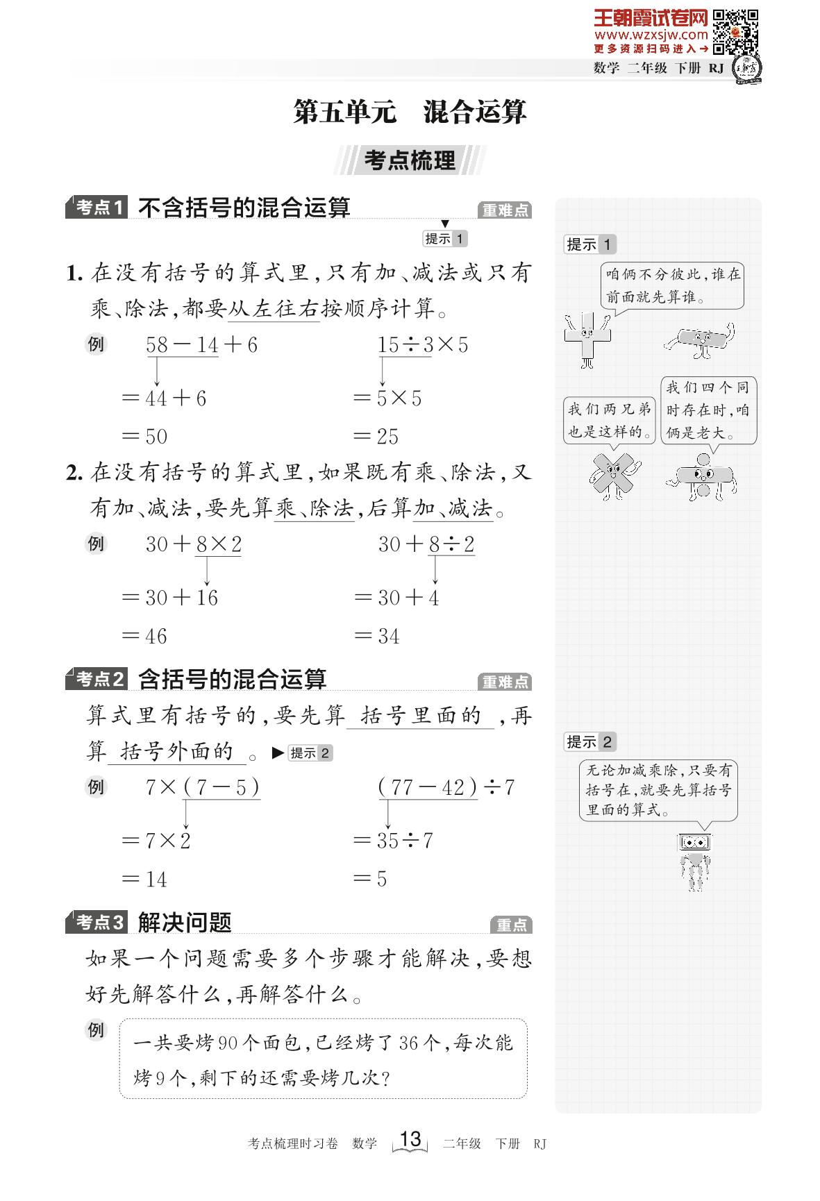 2023下册二年级数学人教版 考点梳理手册——第五单元 混合运算