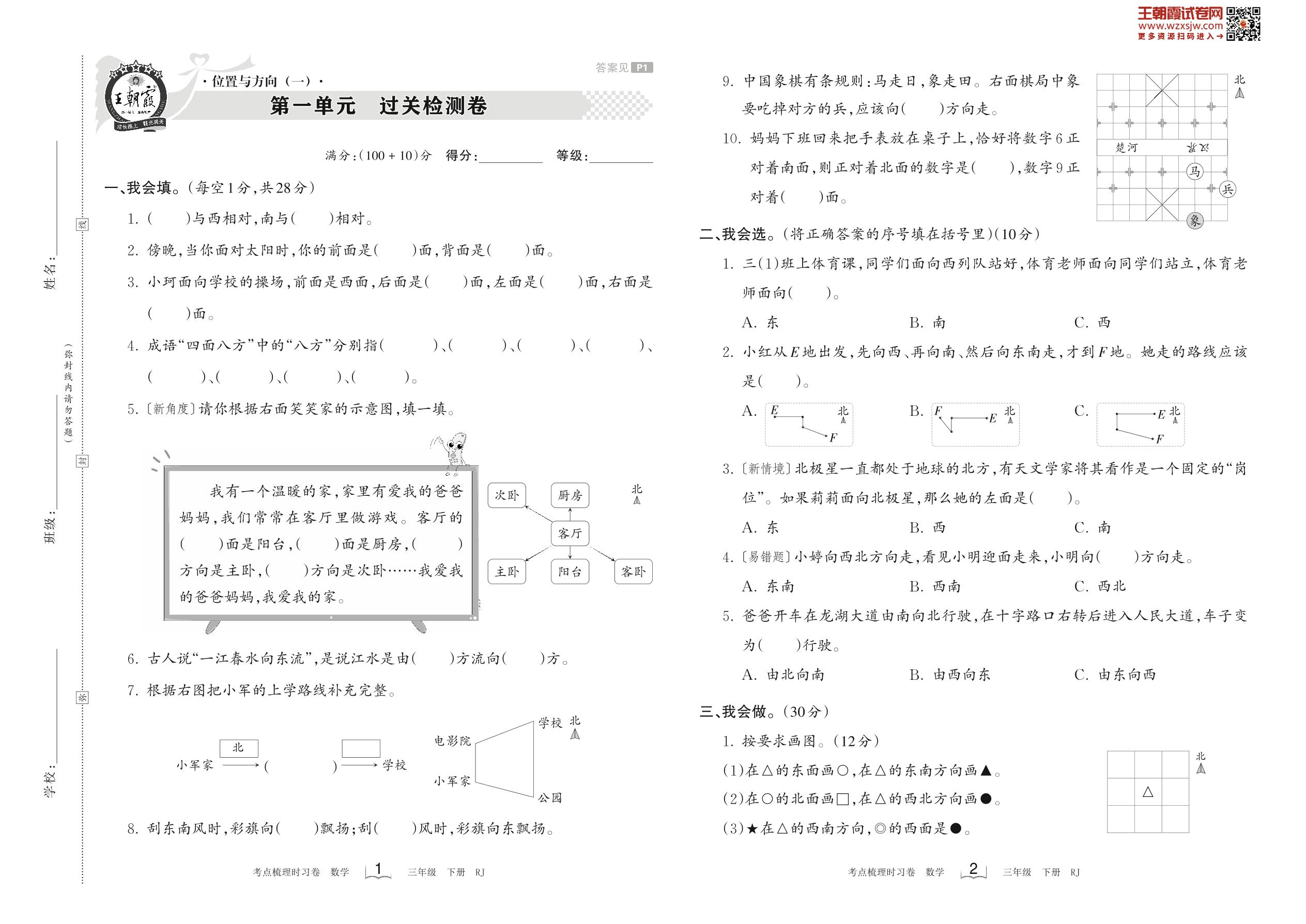 2023下册三年级数学人教版 第一单元 过关检测卷