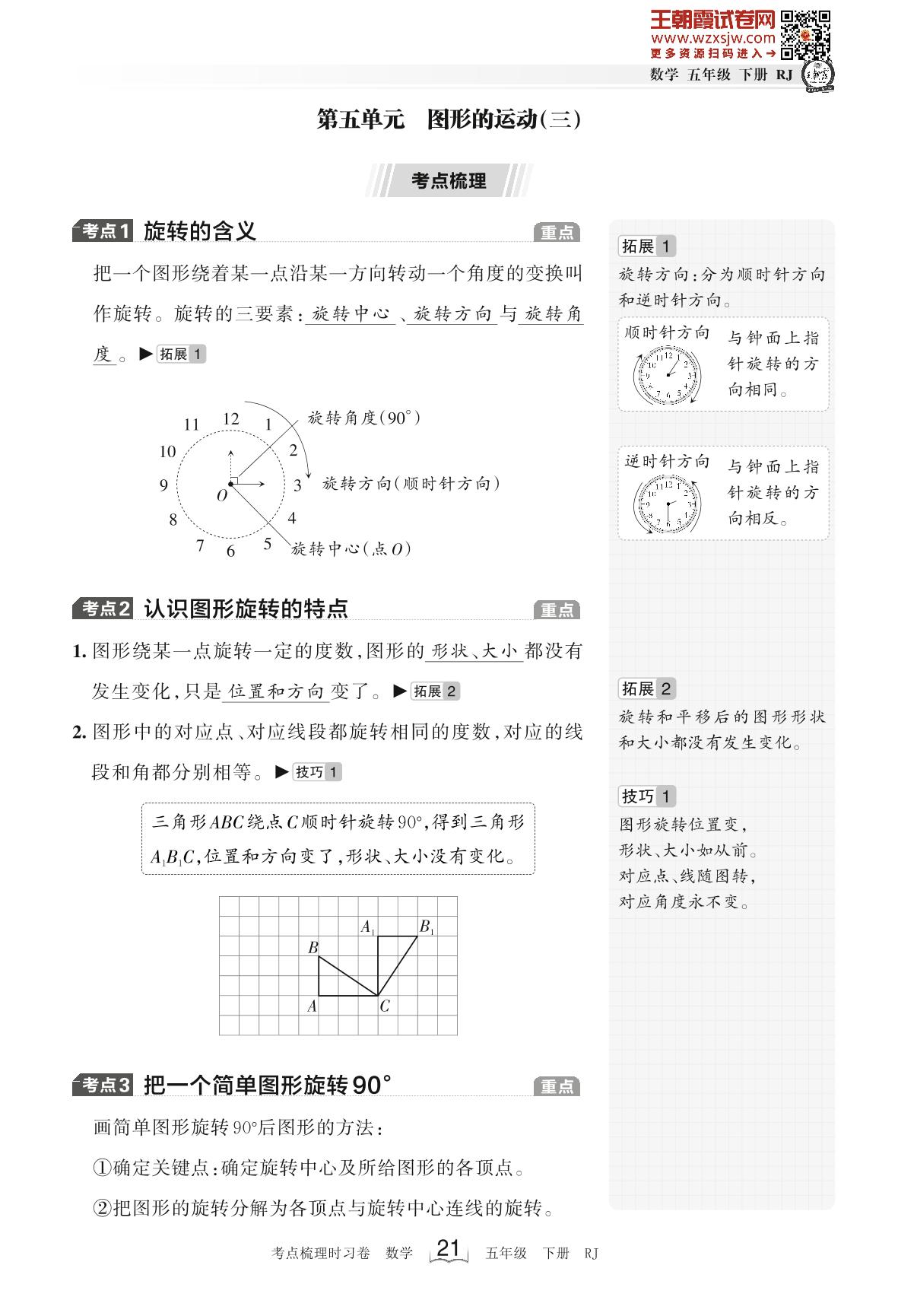 2023下册五年级数学人教版 考点梳理手册——第五单元 图形的运动(三)