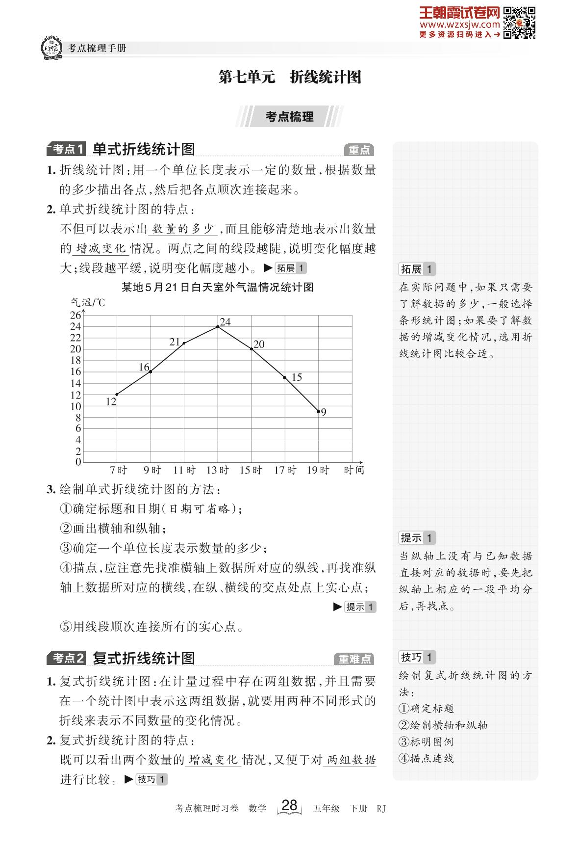 2023下册五年级数学人教版 考点梳理手册——第七单元 折线统计图
