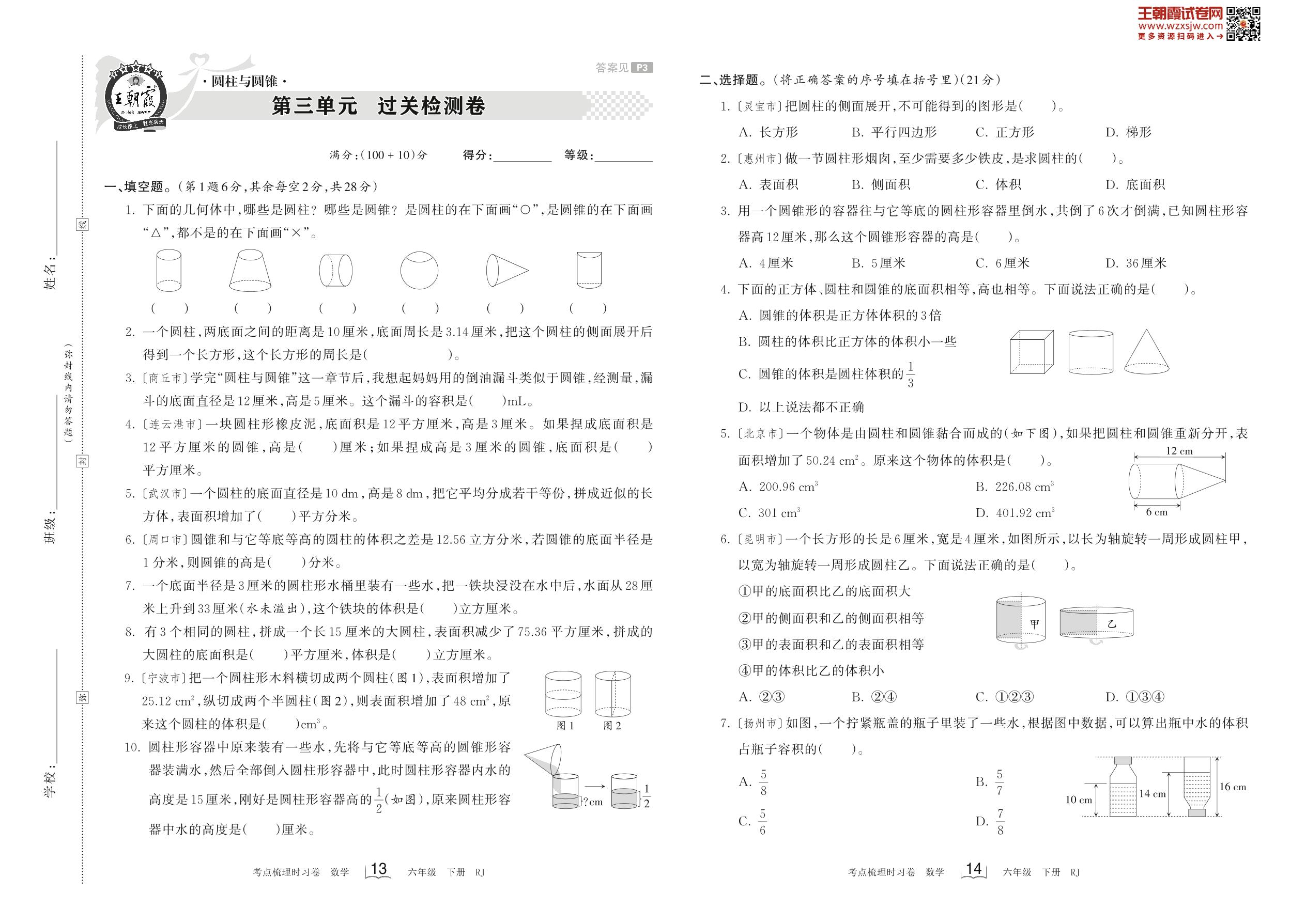 六年级数学人教版下册单元卷