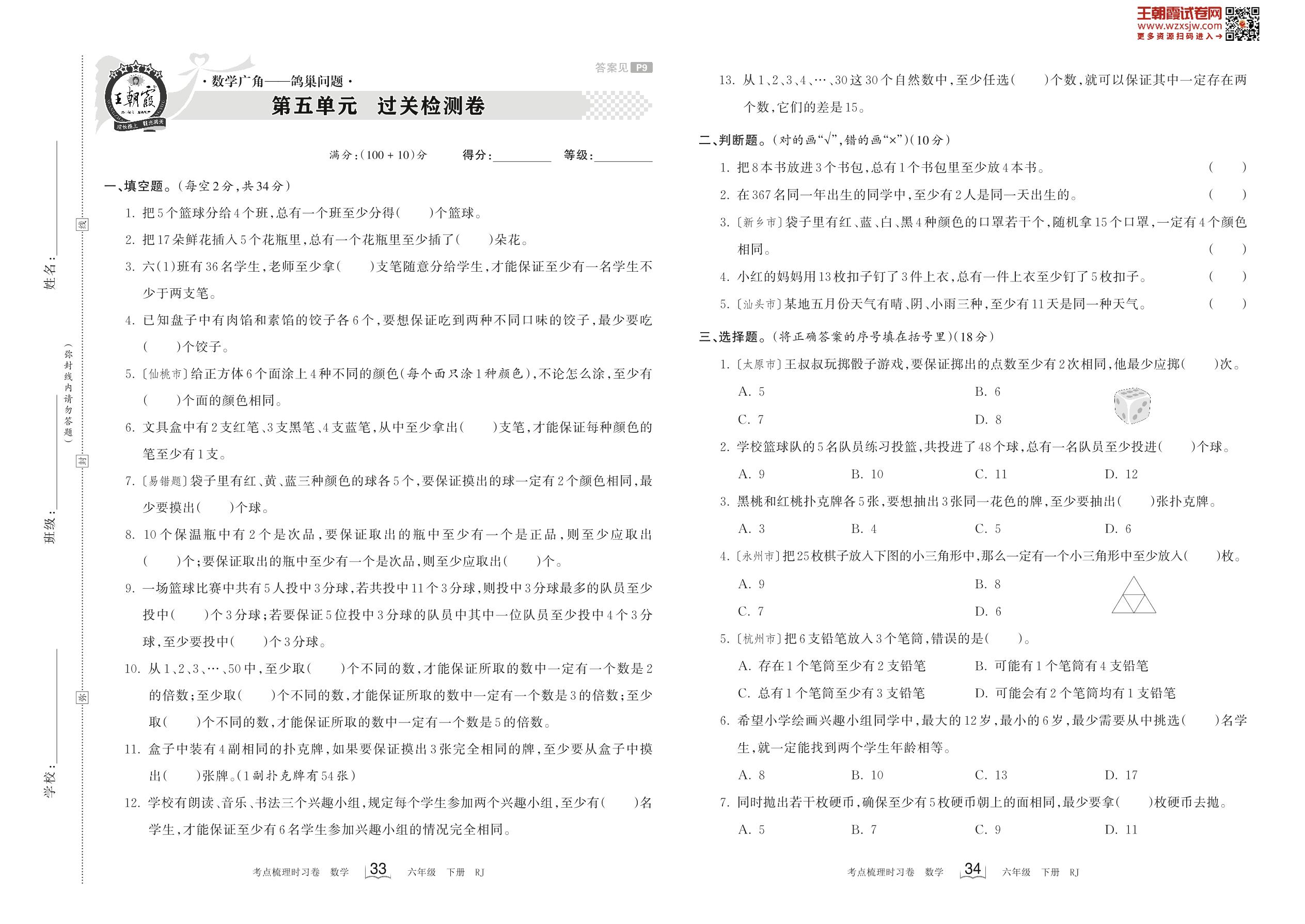 2023下册六年级数学人教版 第五单元 过关检测卷