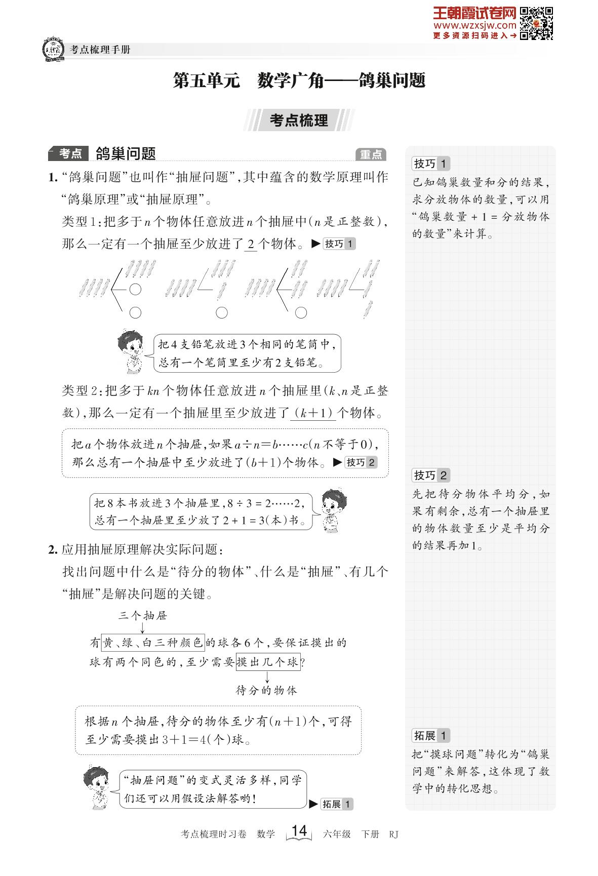 2023下册六年级数学人教版 考点梳理手册——第五单元 数学广角——鸽巢问题