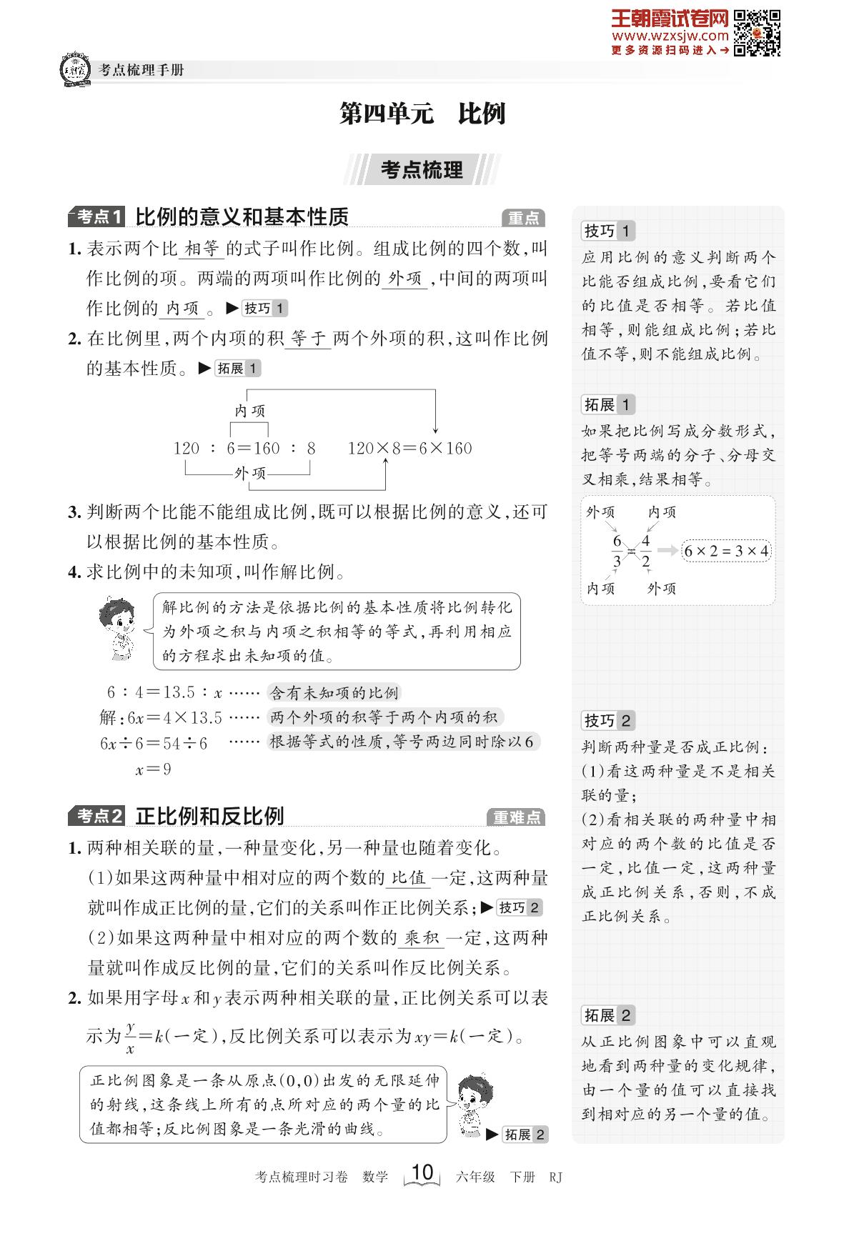 2023下册六年级数学人教版 考点梳理手册——第四单元 比列