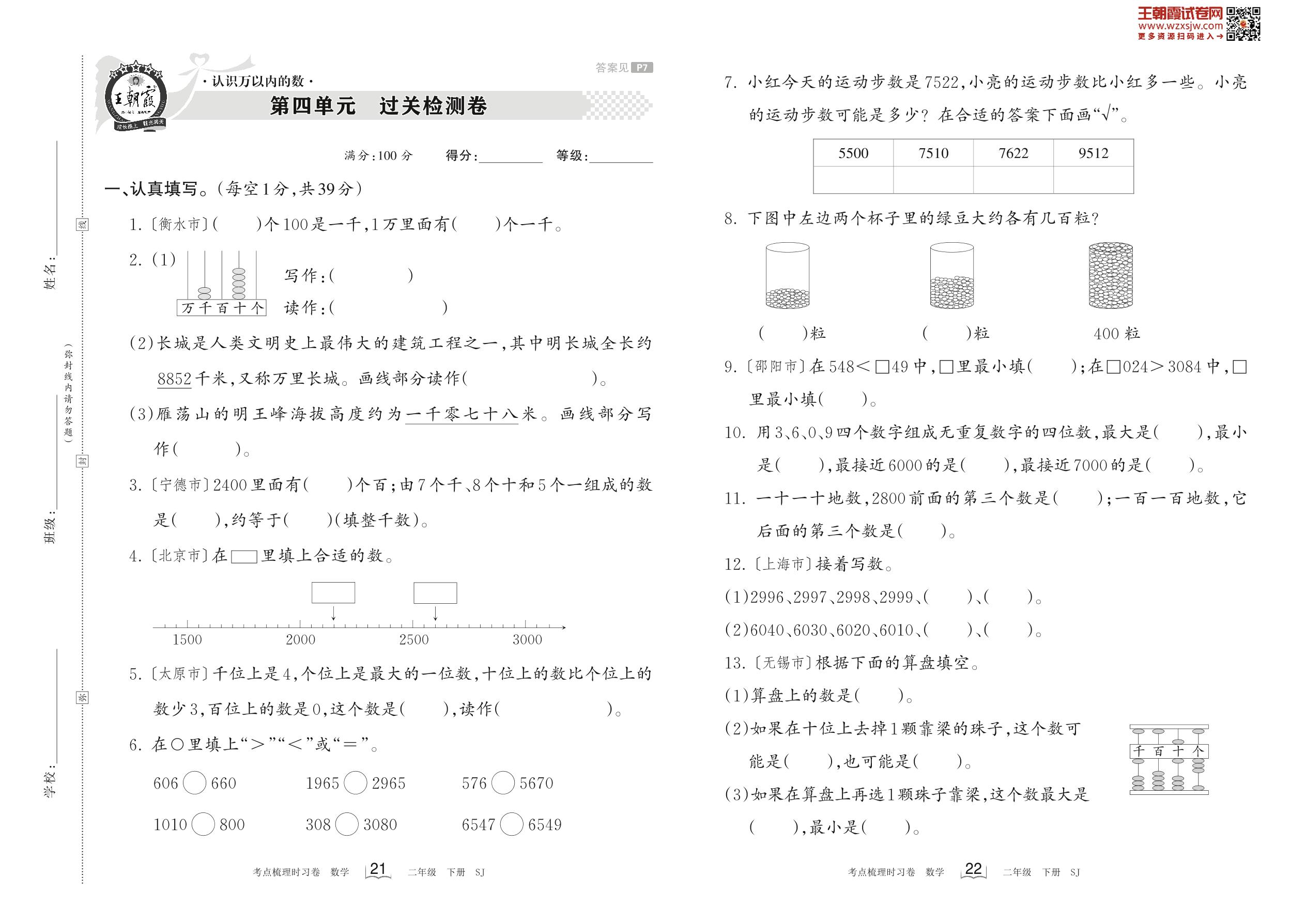 2023下册二年级数学苏教版 第四单元 过关检测卷