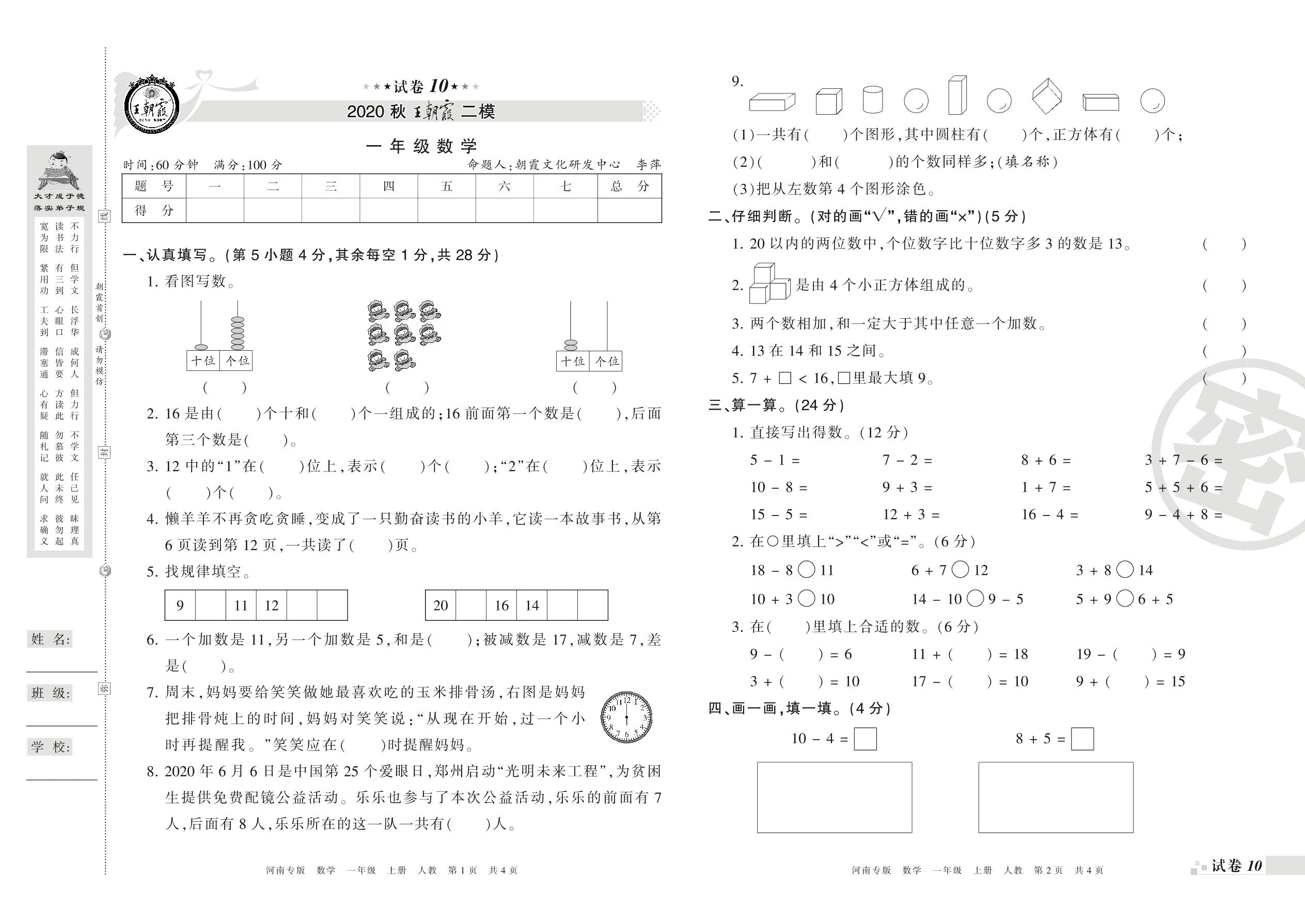 王朝霞期末模拟卷一年级上册数学(人教版)_R210802211321【10】