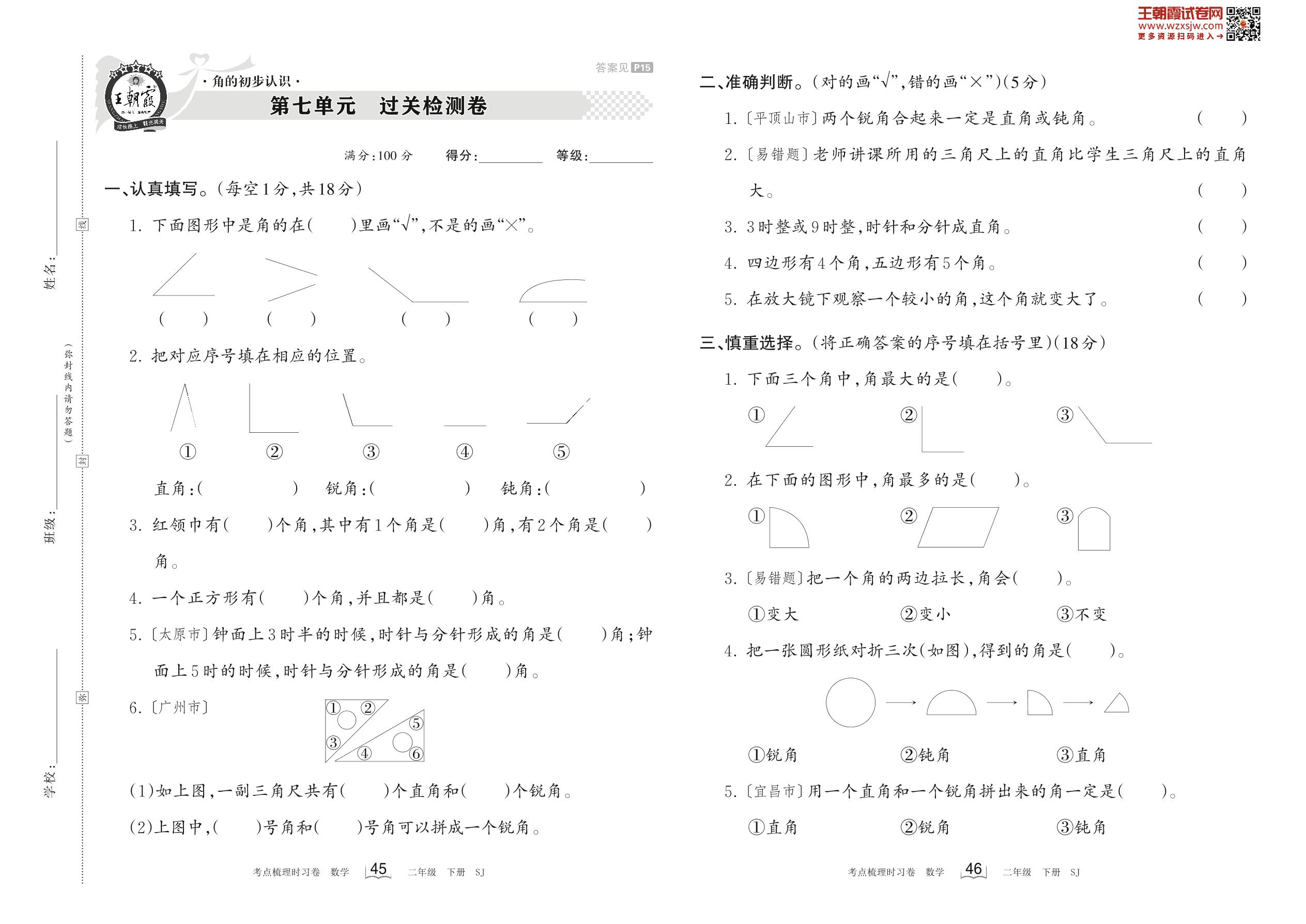 2023下册二年级数学苏教版 第七单元 过关检测卷