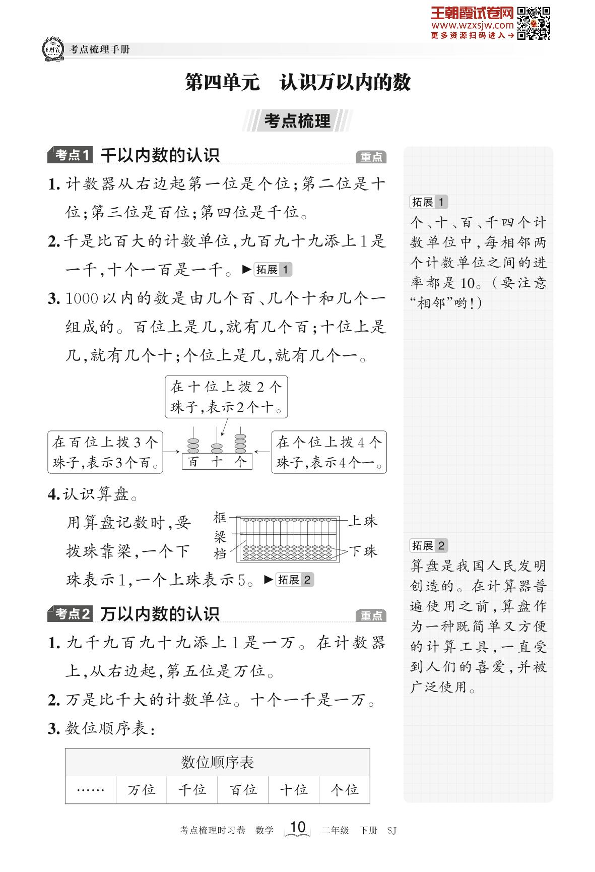 2023下册二年级数学苏教版 考点梳理手册——第四单元 认识万以内的数
