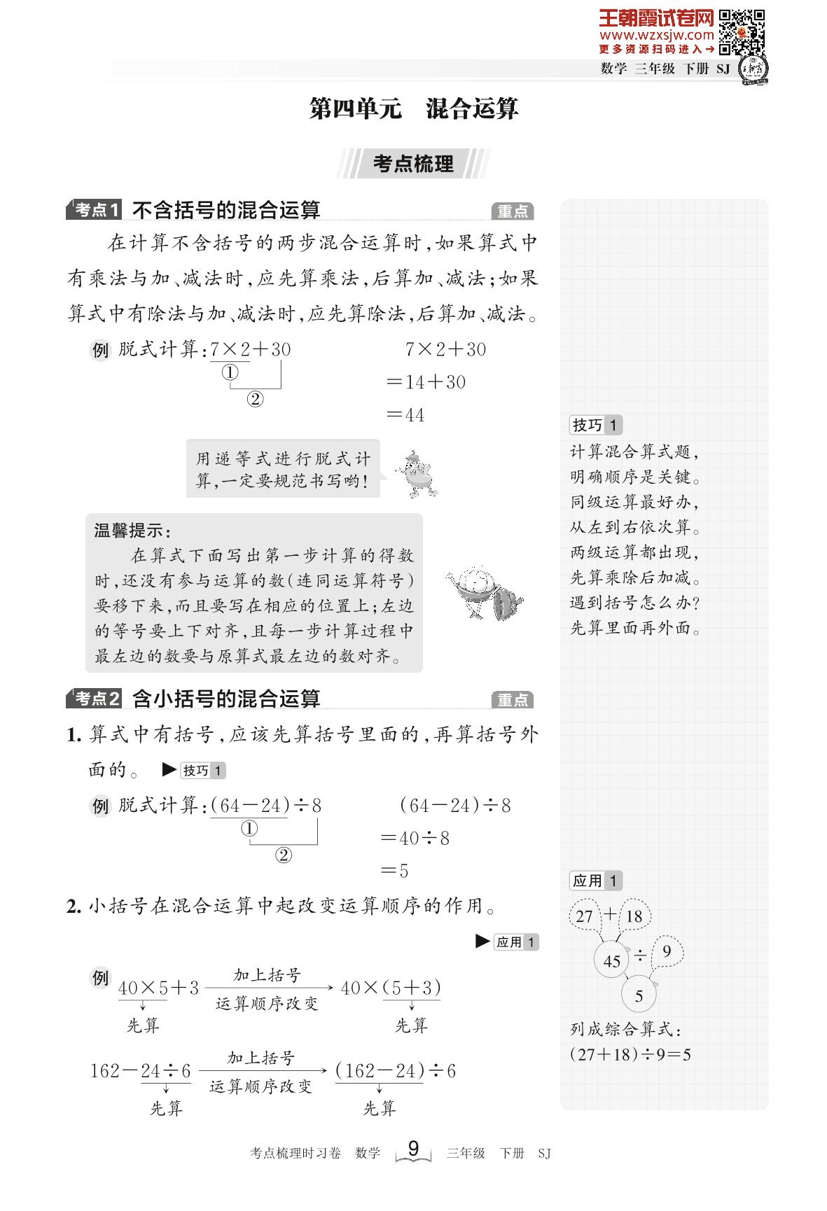 2023下册三年级数学苏教版 考点梳理手册——第四单元 混合运算