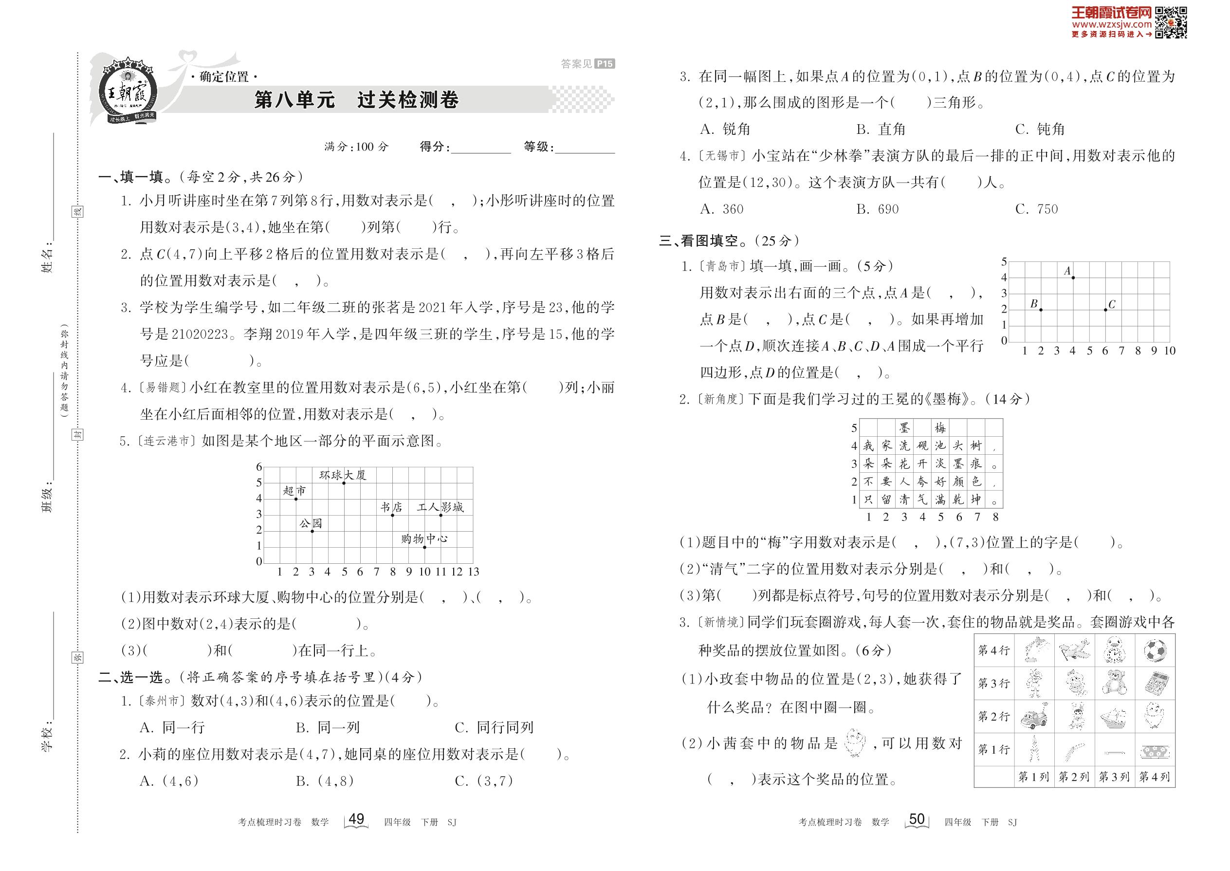 四年级数学苏教版下册单元卷