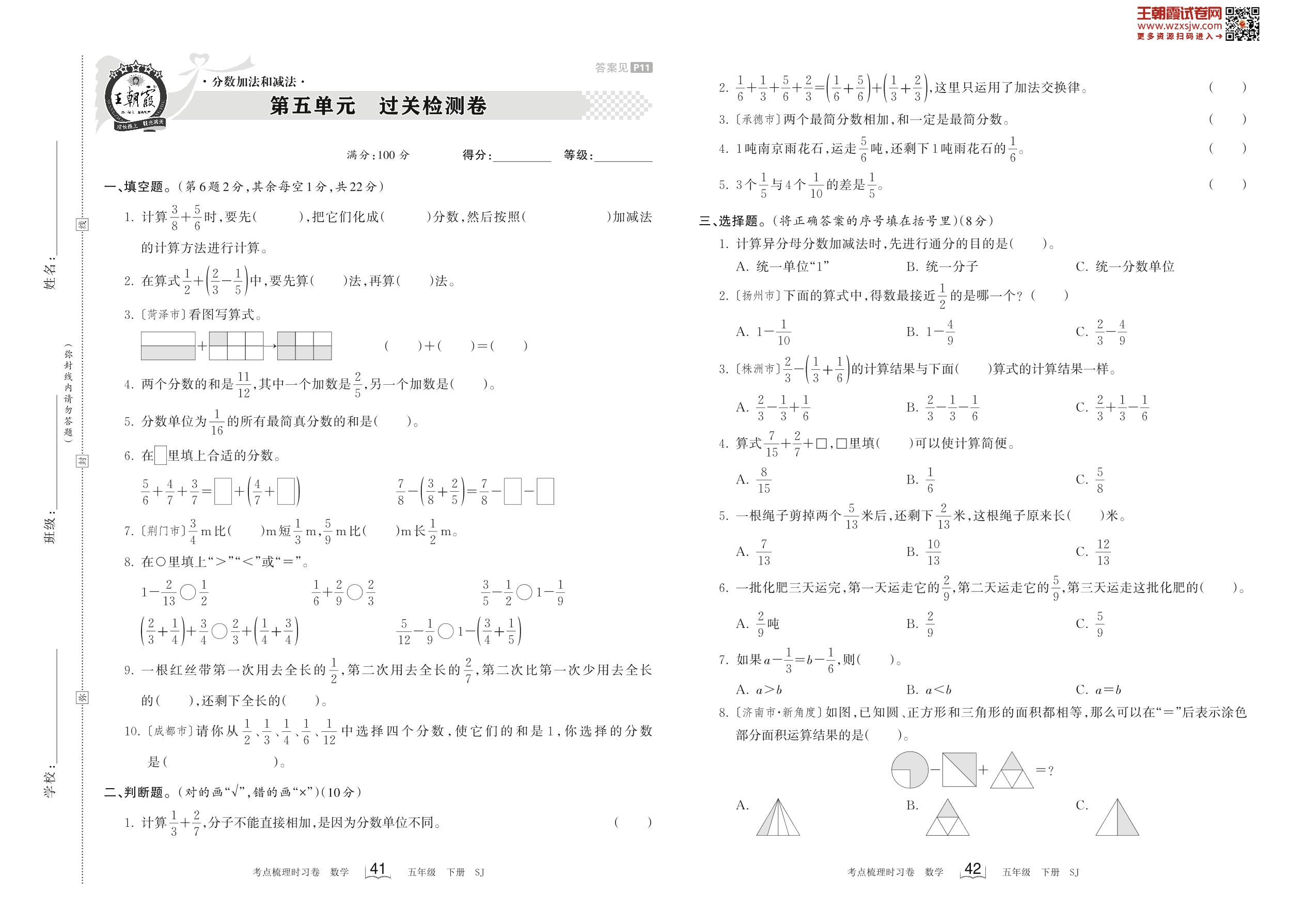 2023下册五年级数学苏教版 第五单元 过关检测卷