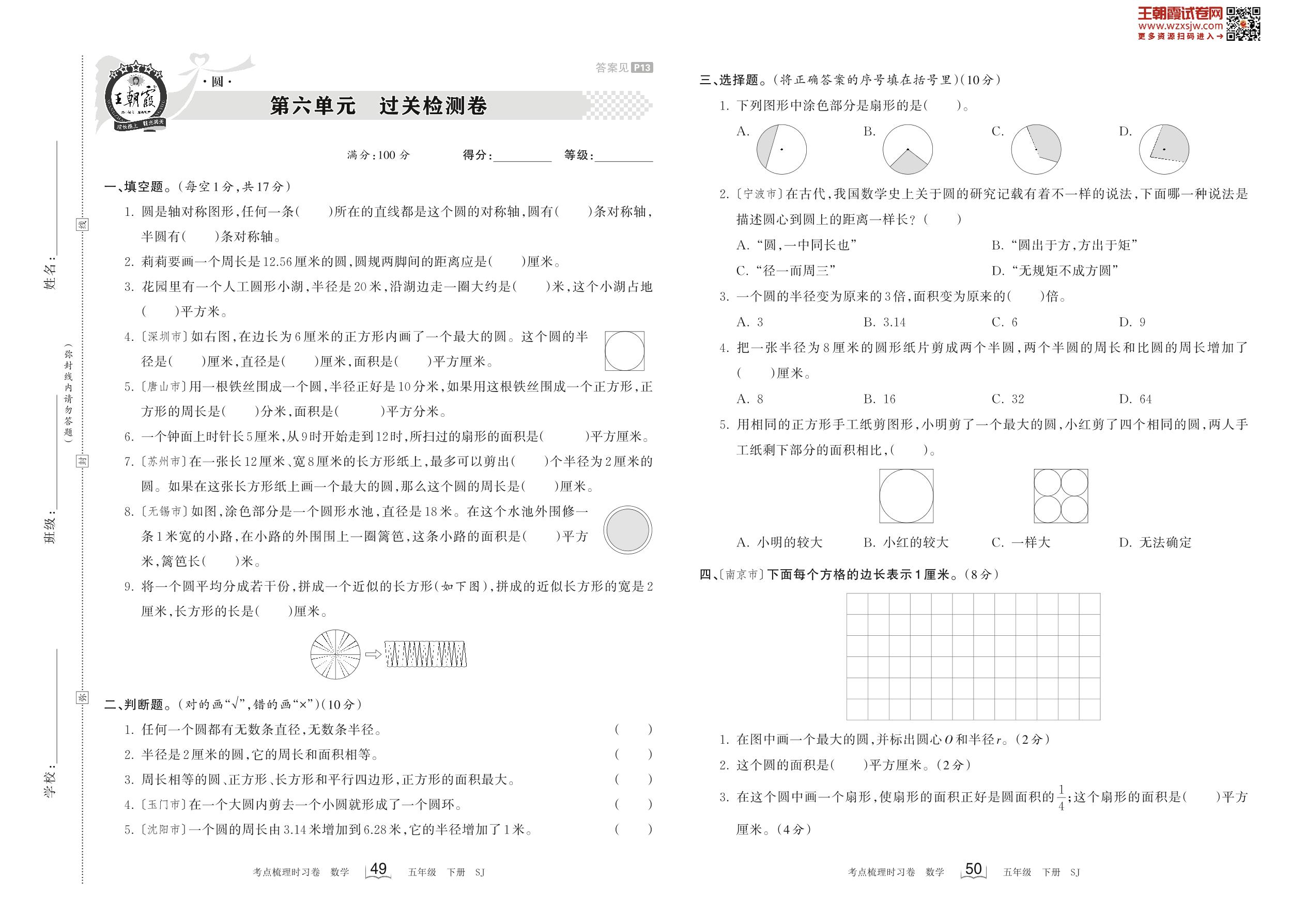 2023下册五年级数学苏教版 第六单元 过关检测卷