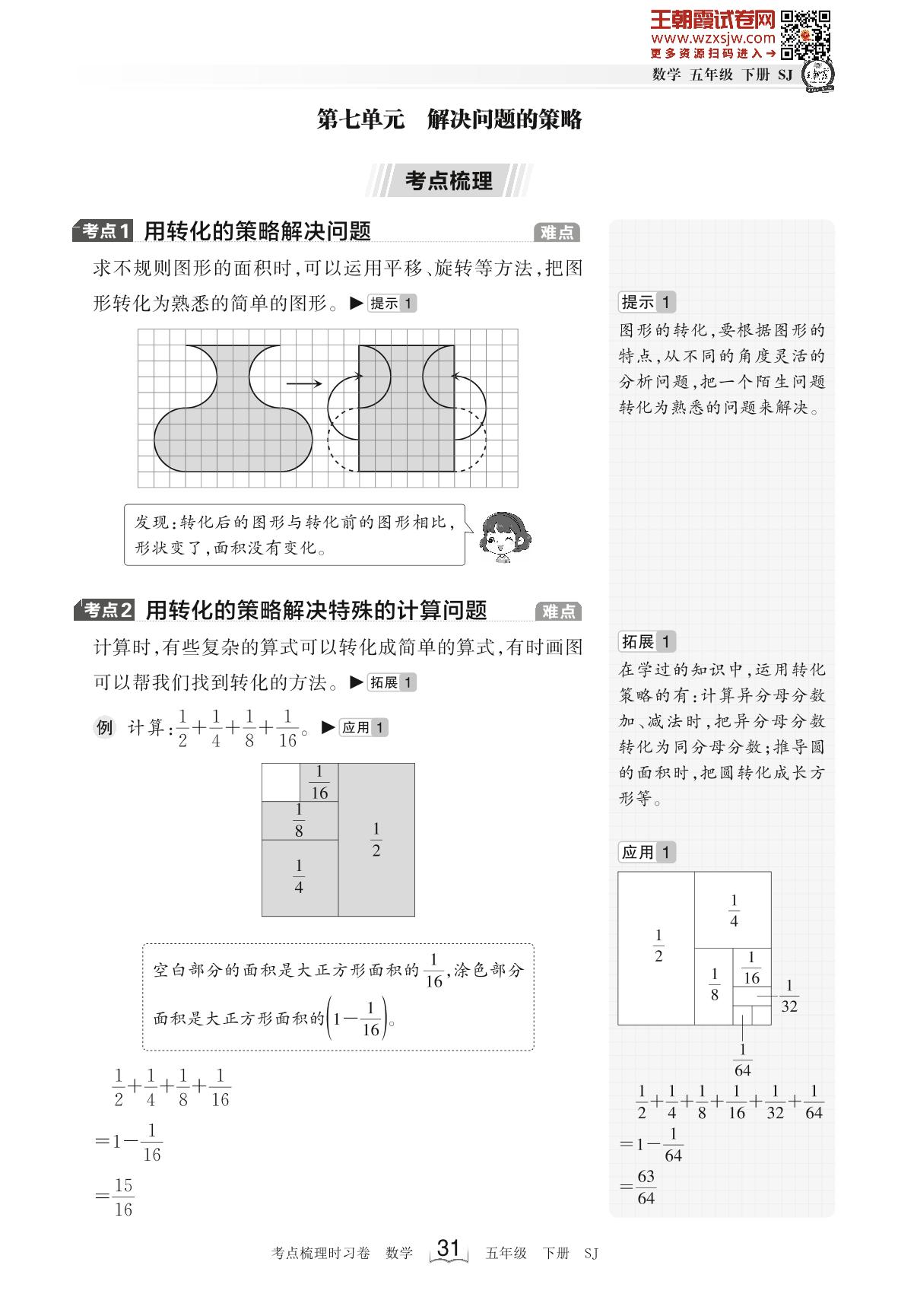 2023下册五年级数学苏教版 考点梳理手册——第七单元 解决问题的策略