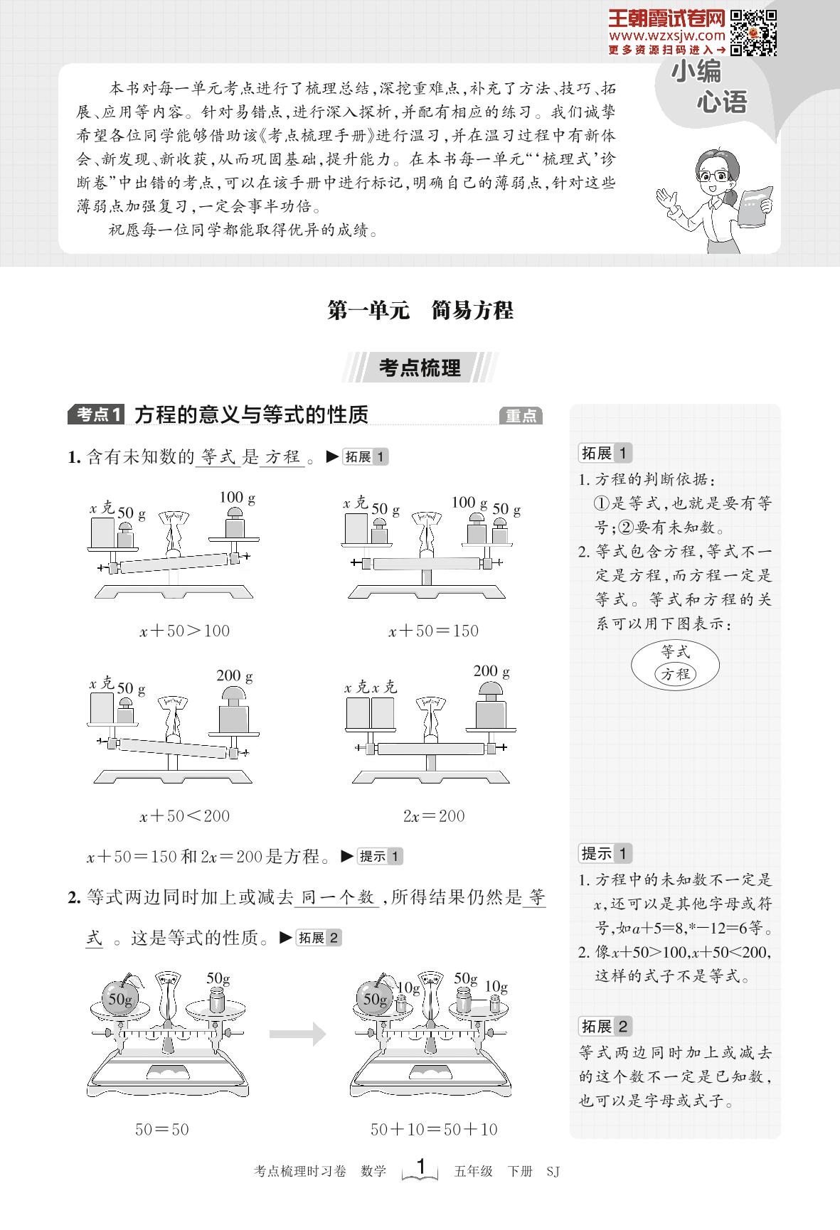 2023下册五年级数学苏教版 考点梳理手册——第一单元 简易方程