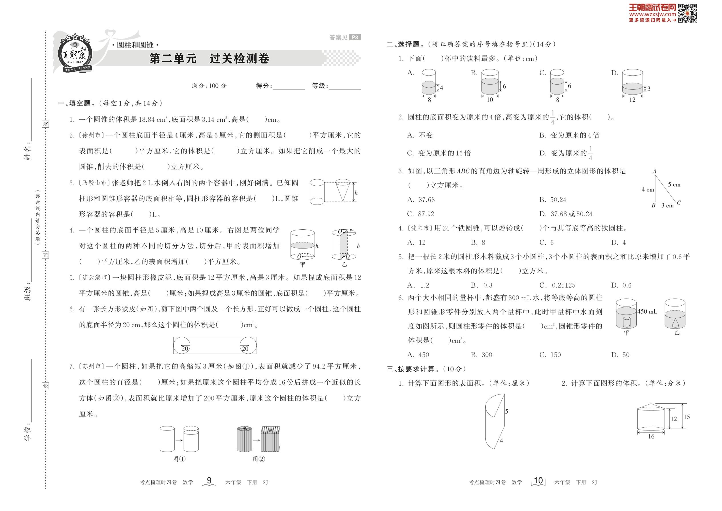2023下册六年级数学苏教版 第二单元 过关检测卷