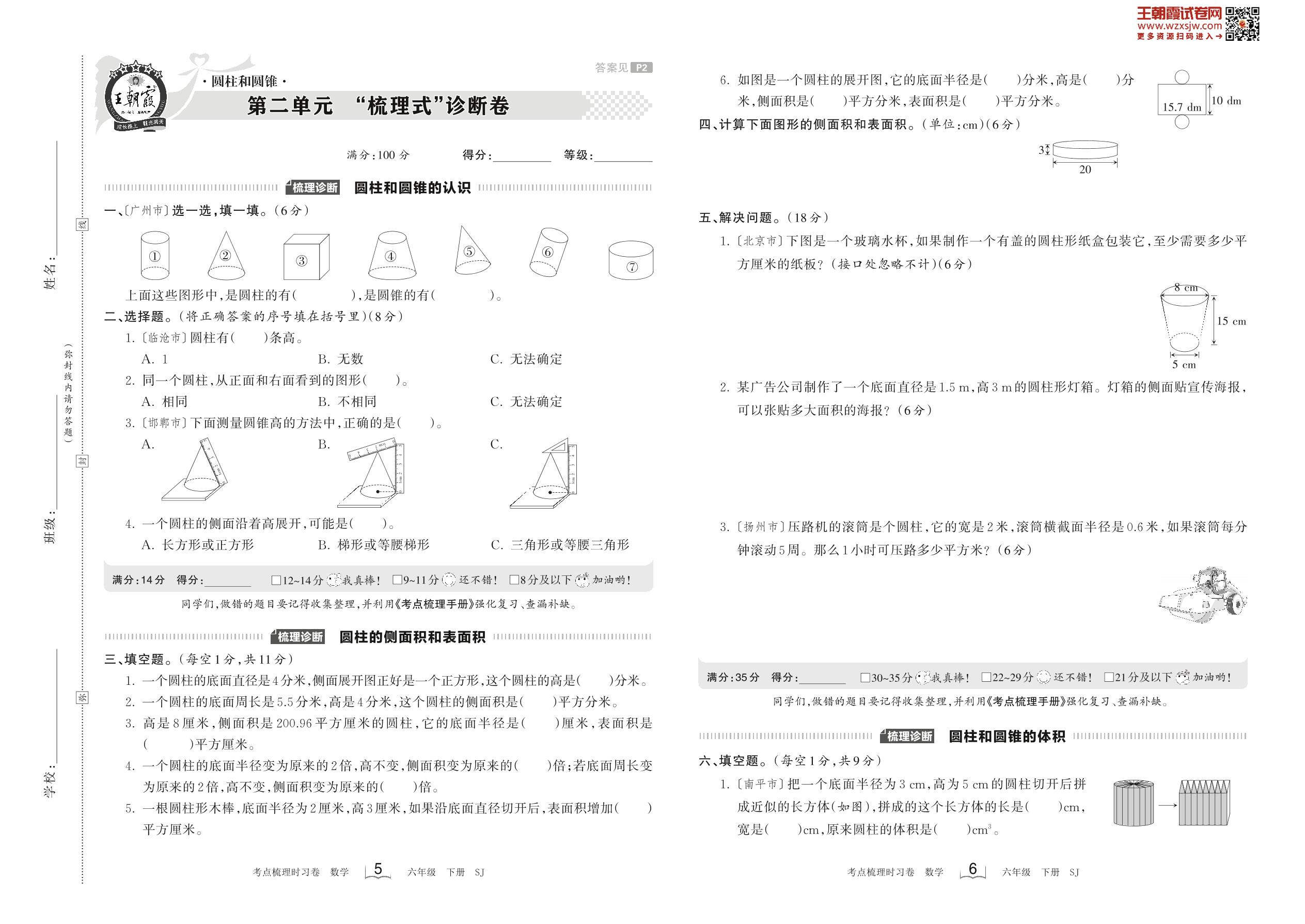 2023下册六年级数学苏教版 第二单元 “梳理式”诊断卷