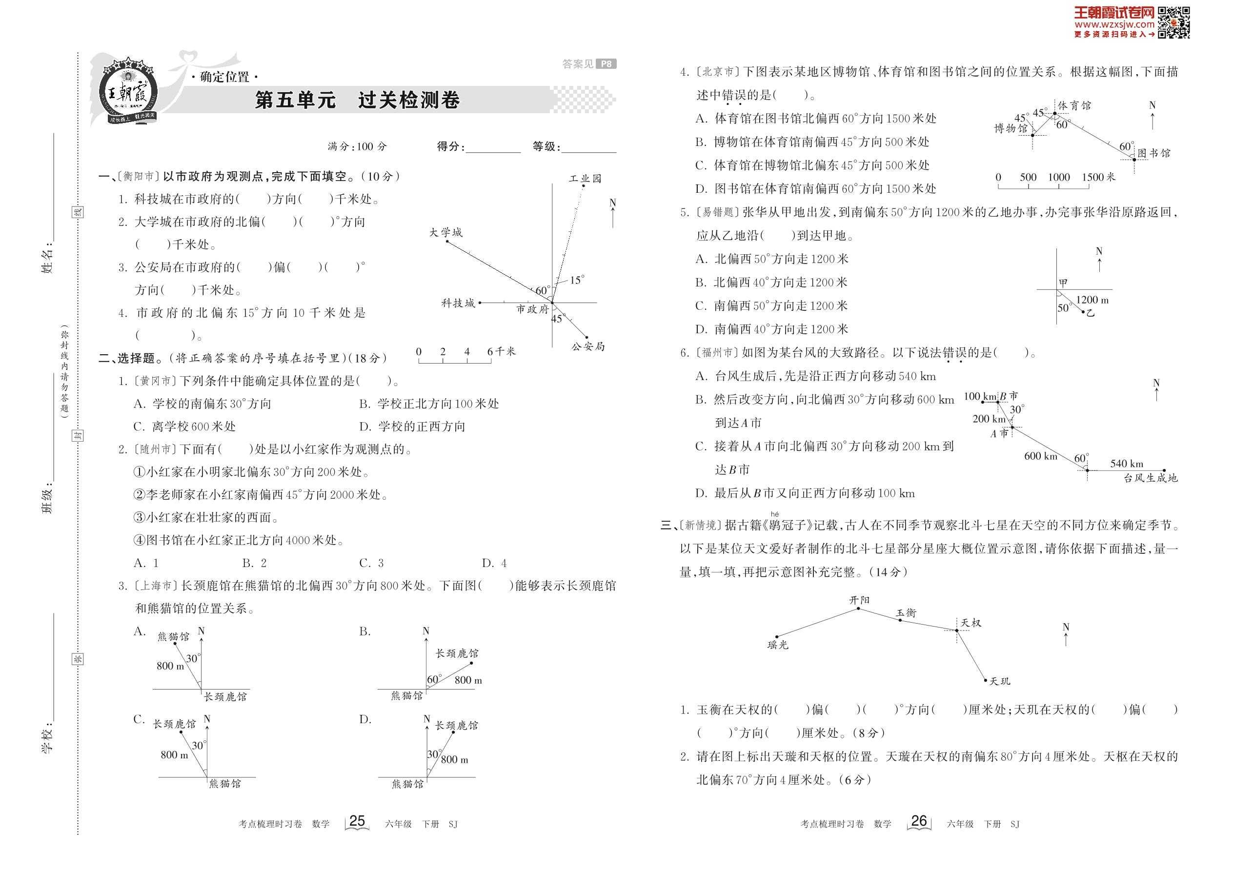 2023下册六年级数学苏教版 第五单元 过关检测卷