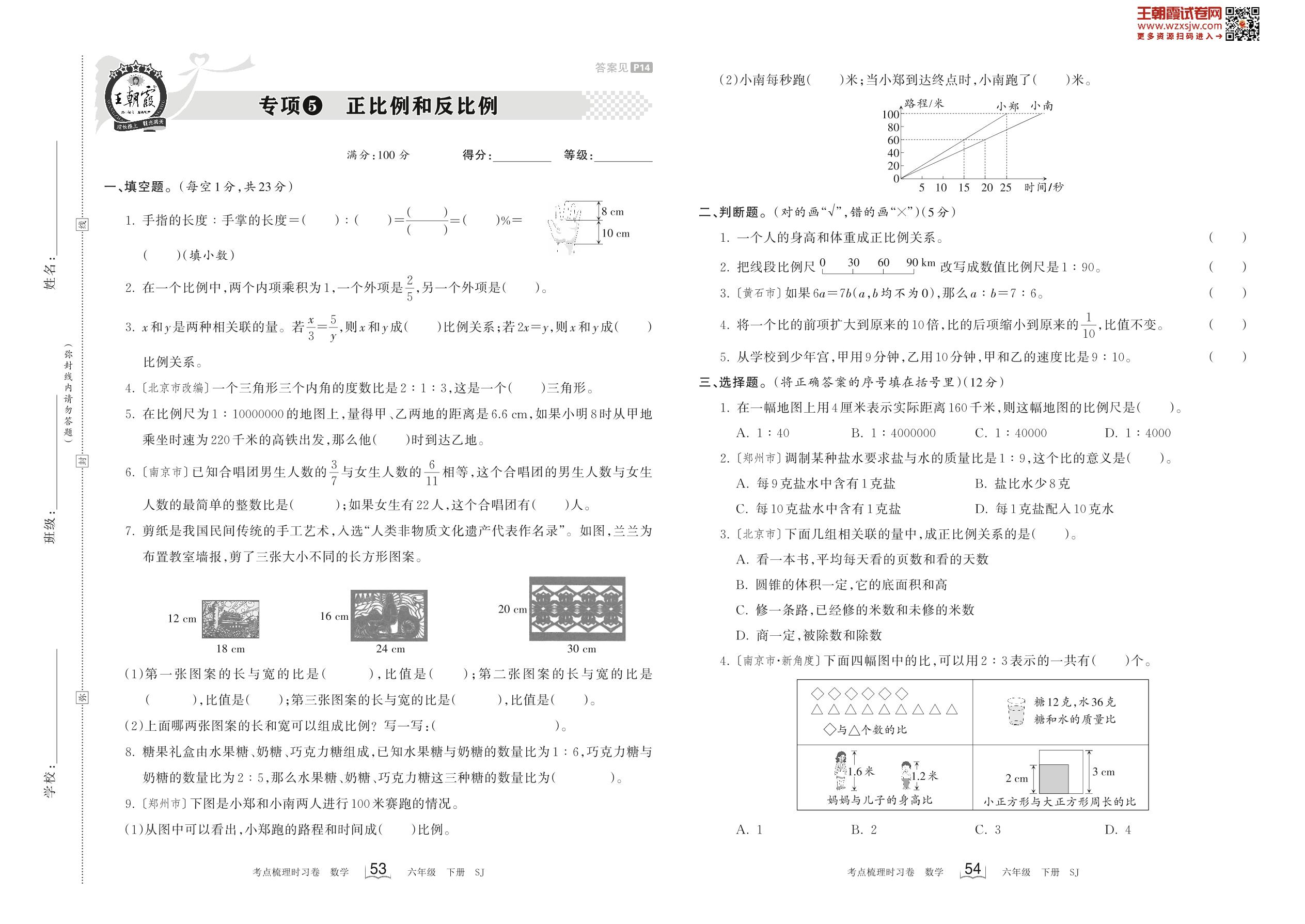 2023下册六年级数学苏教版 专项5 正比例和反比例