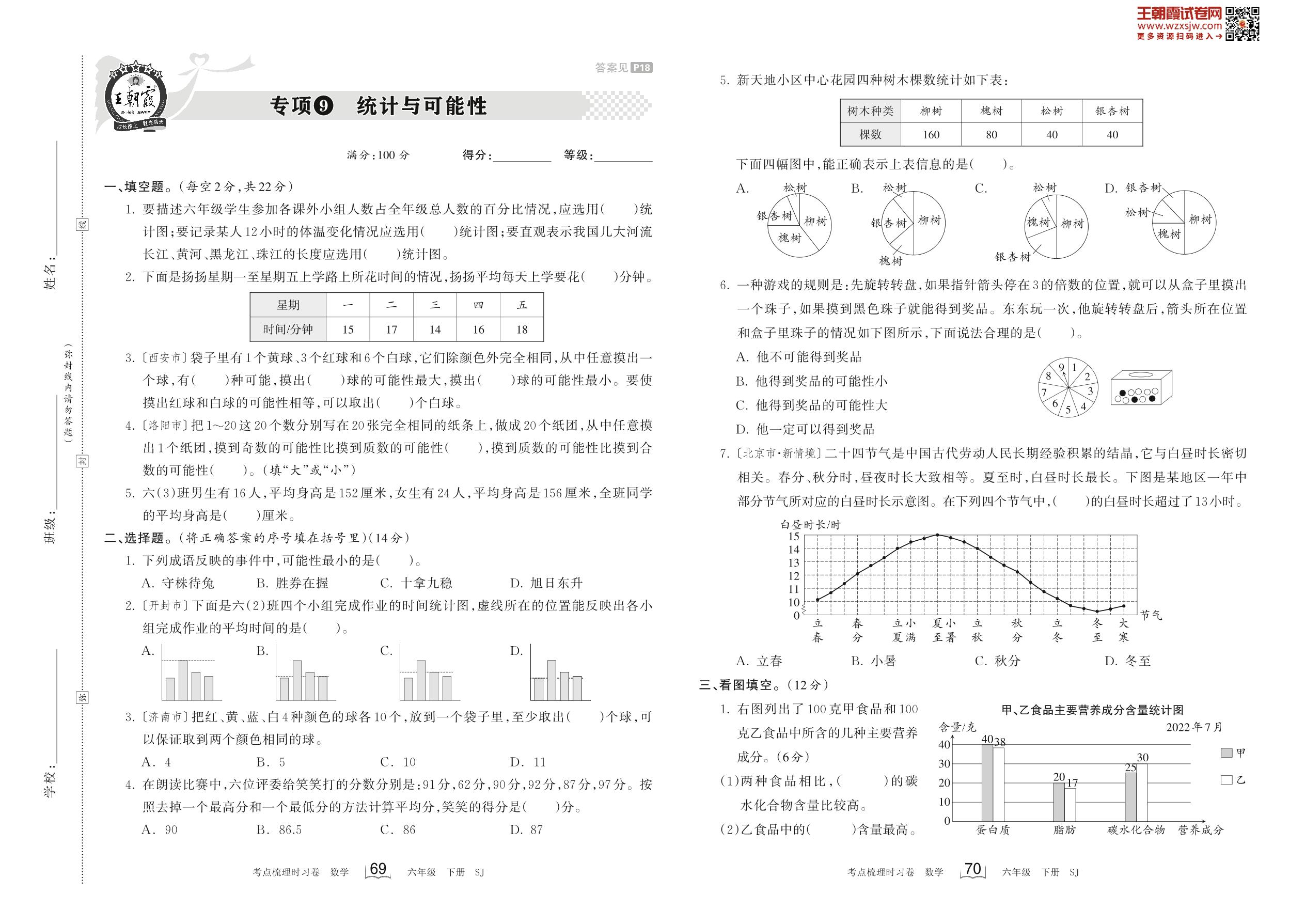 2023下册六年级数学苏教版 专项9 统计与可能性