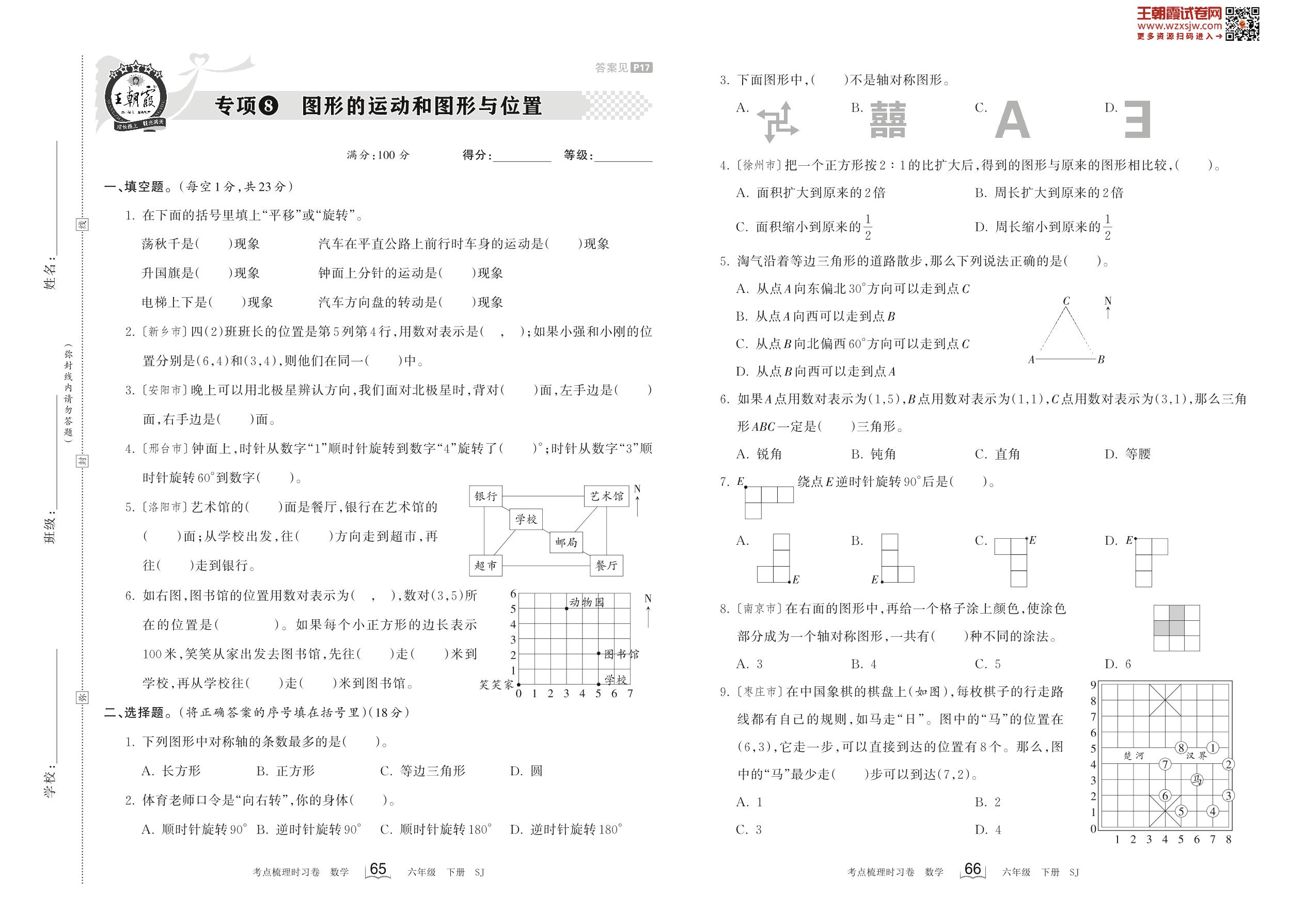 2023下册六年级数学苏教版 专项8 图形的运动和图形与位置
