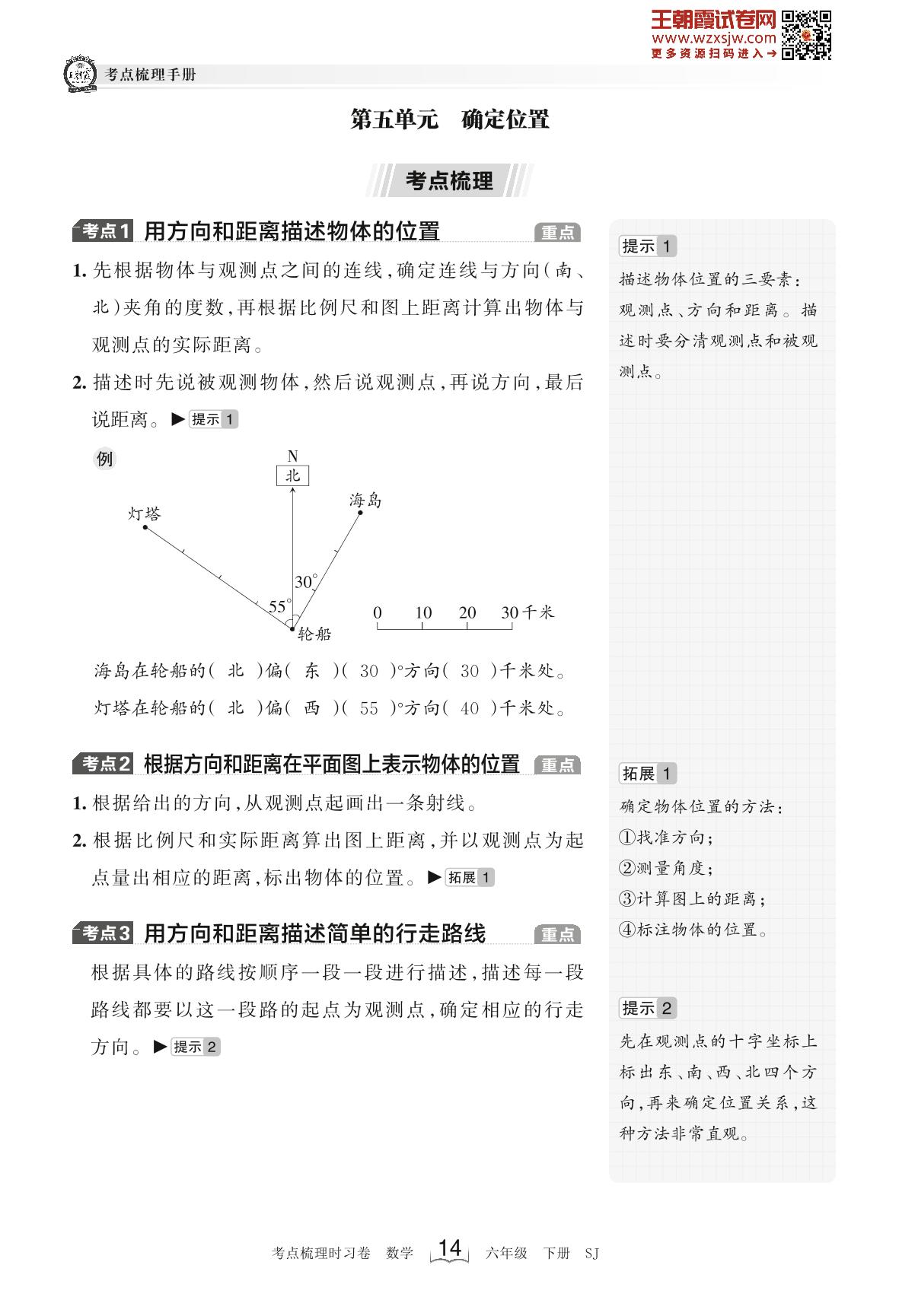 2023下册六年级数学苏教版 考点梳理手册——第五单元 确定位置