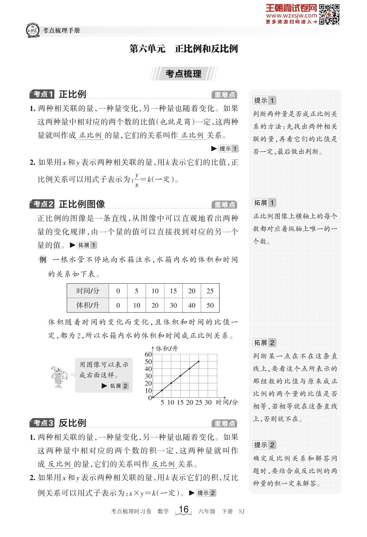 2023下册六年级数学苏教版 考点梳理手册——第六单元 正比例和反比例
