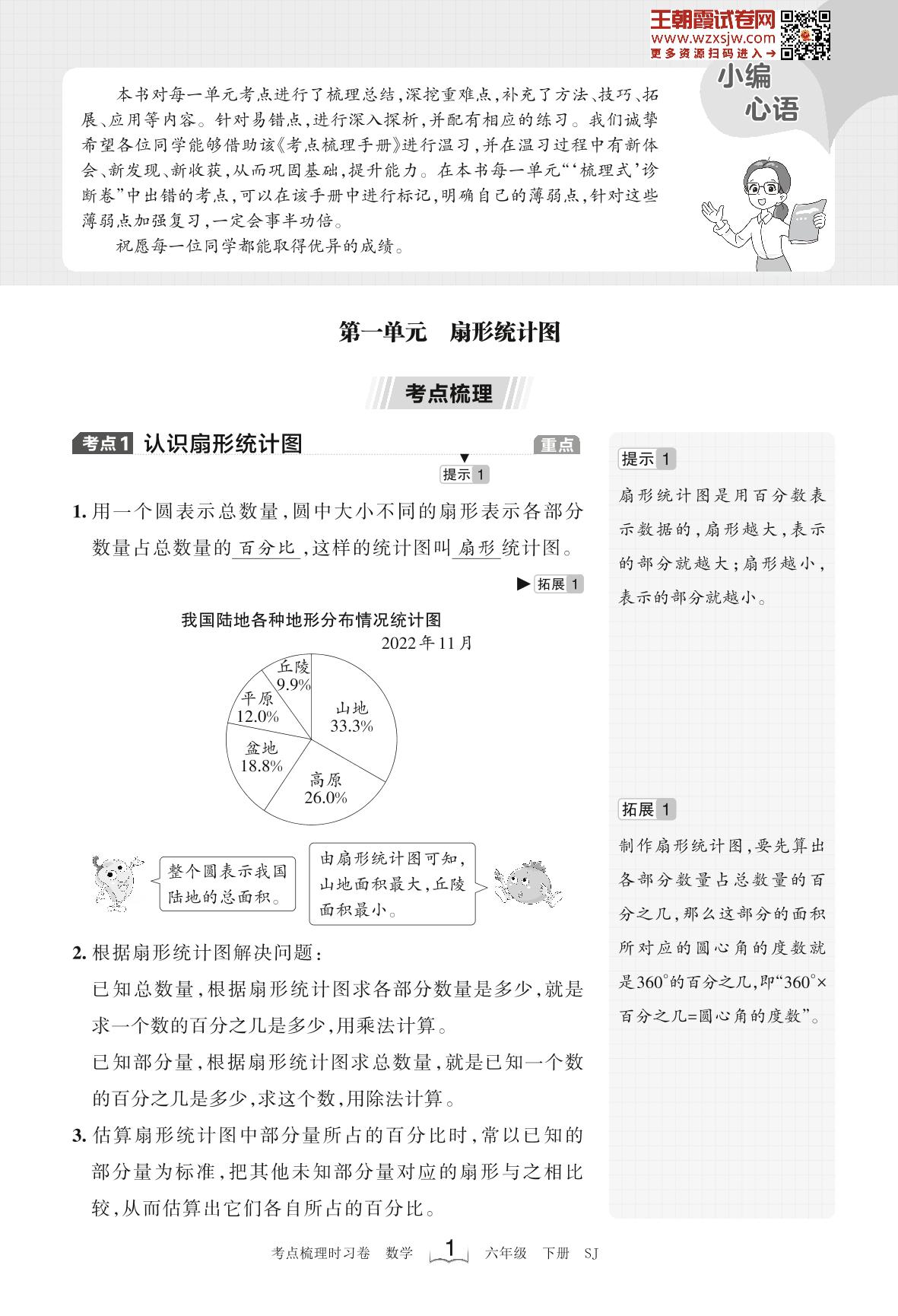 2023下册六年级数学苏教版 考点梳理手册——第一单元 扇形统计图