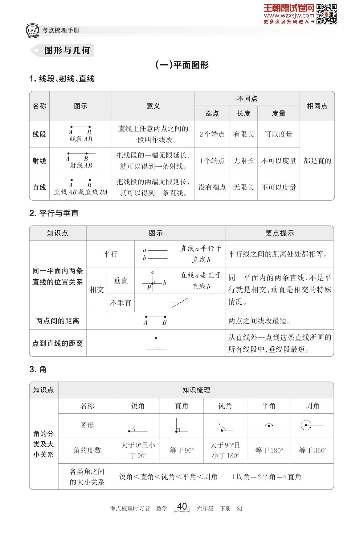 2023下册六年级数学苏教版 考点梳理手册——第七单元 总复习 图形与几何