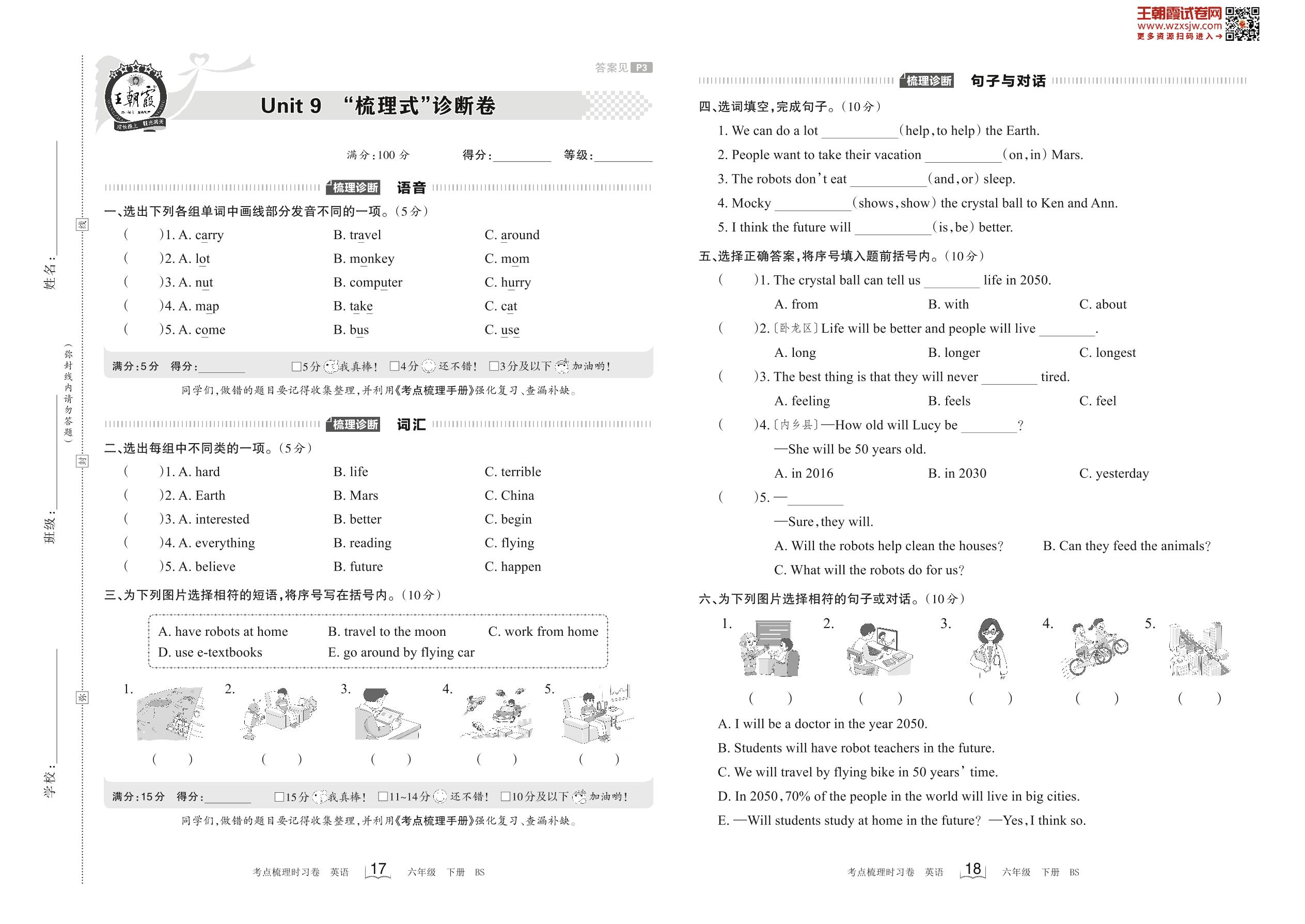2023下册六年级英语北师版 Unit 9 “梳理式”诊断卷