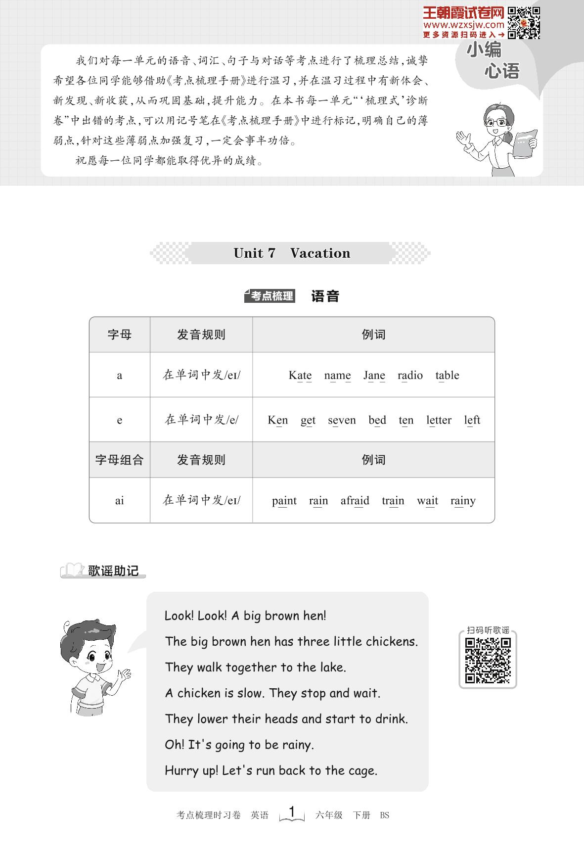 2023下册六年级英语北师版 考点梳理手册——Unit 7 Vacation
