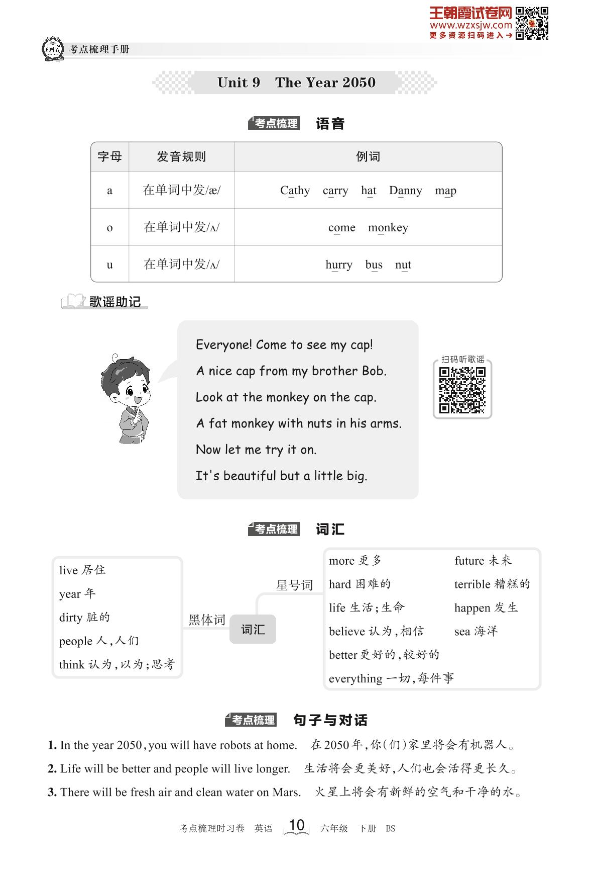 2023下册六年级英语北师版 考点梳理手册——Unit 9 The Year 2050