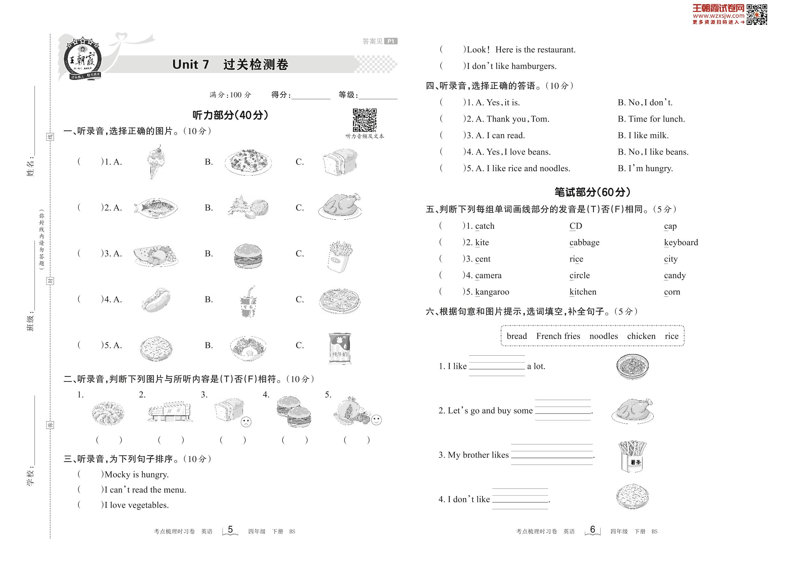 2023下册四年级英语北师版 Unit 7 过关检测卷