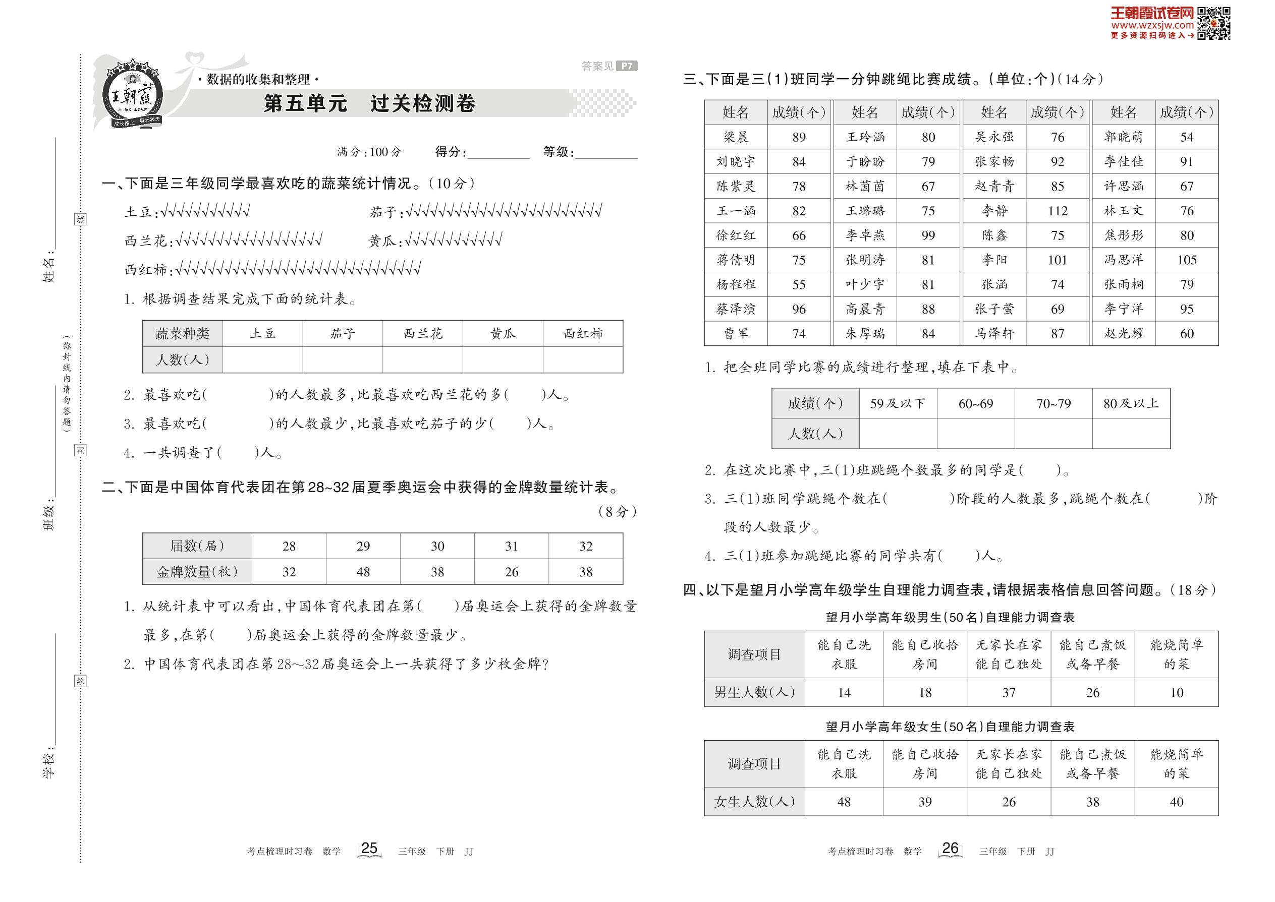 2023下册三年级数学冀教版 第五单元 过关检测卷