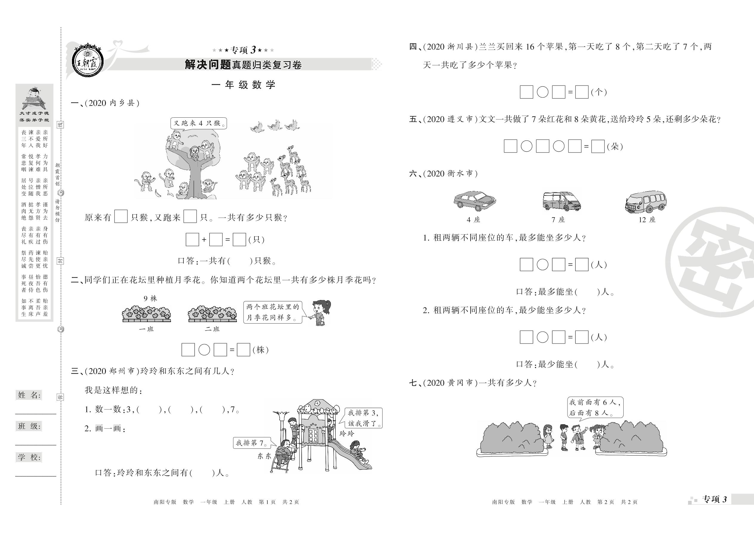 王朝霞期末专项卷——解决问题真题归类复习、新颖题速递:生活与数学一年级上册数学(人教版)_R210802211513【0】