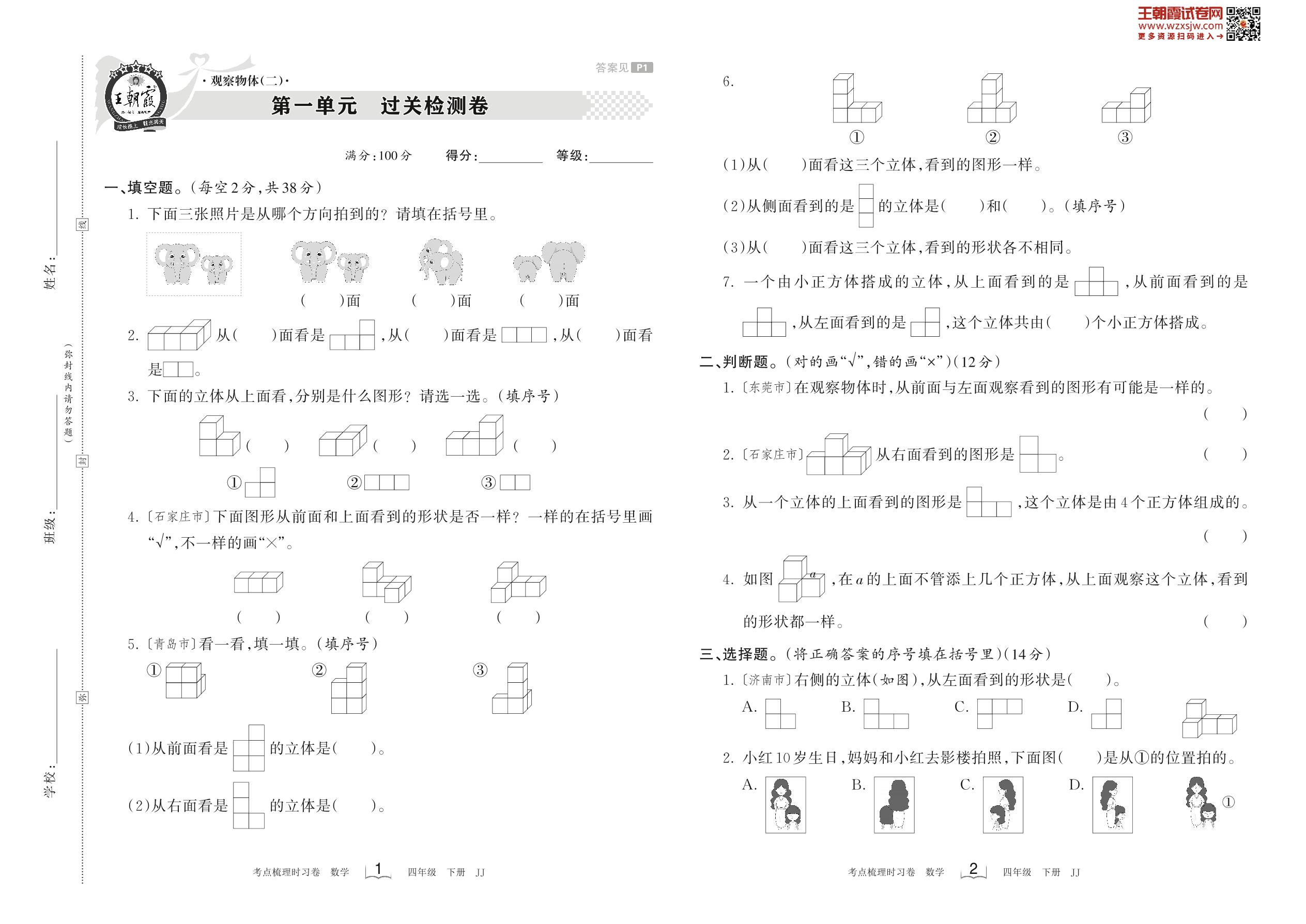 2023下册四年级数学冀教版 第一单元 过关检测卷
