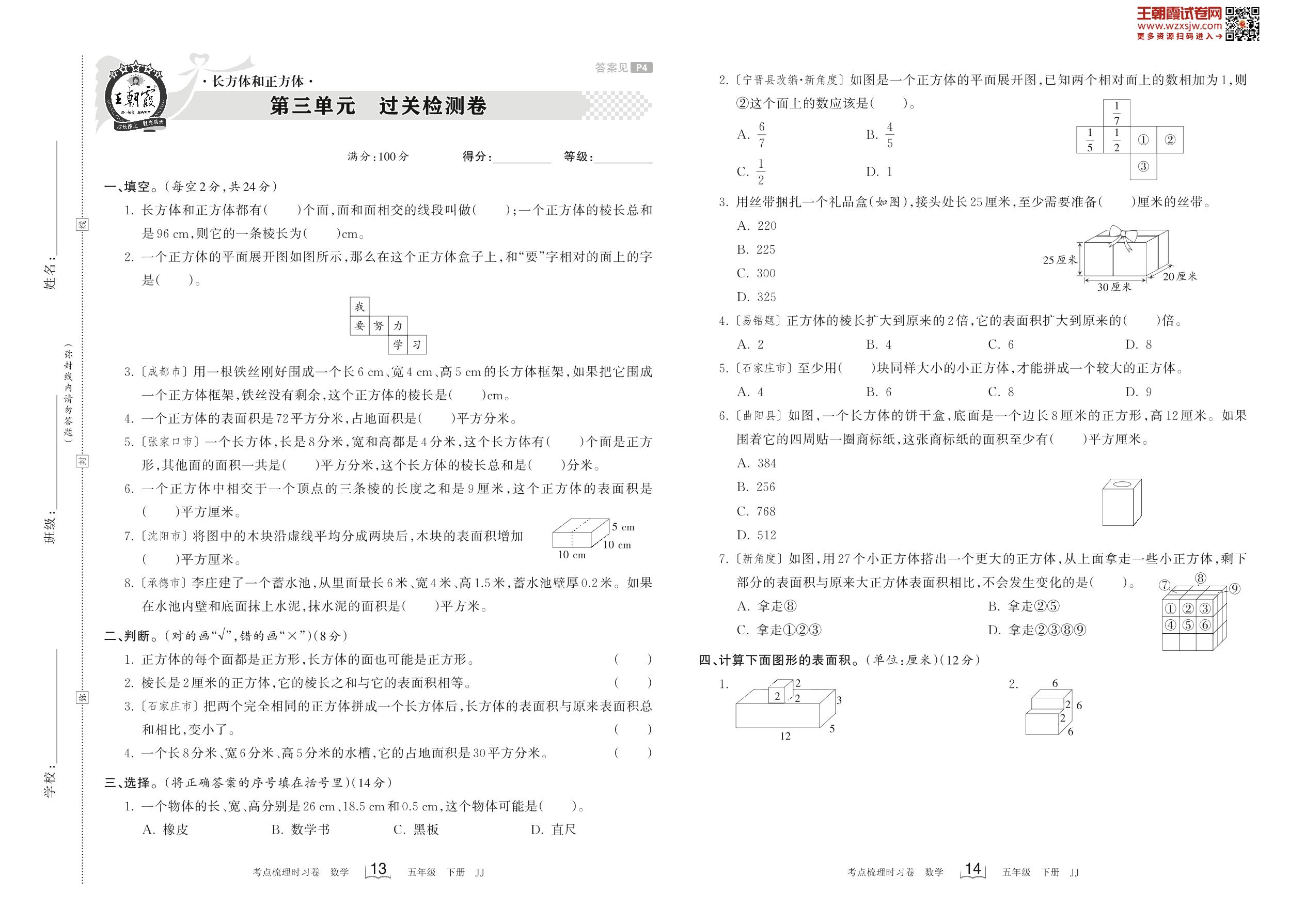 2023下册五年级数学冀教版 第三单元 过关检测卷