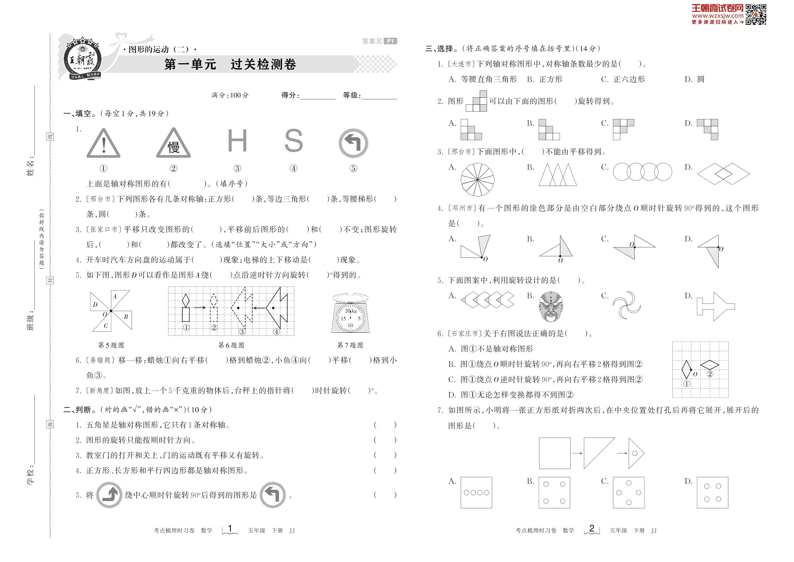 2023下册五年级数学冀教版 第一单元 过关检测卷