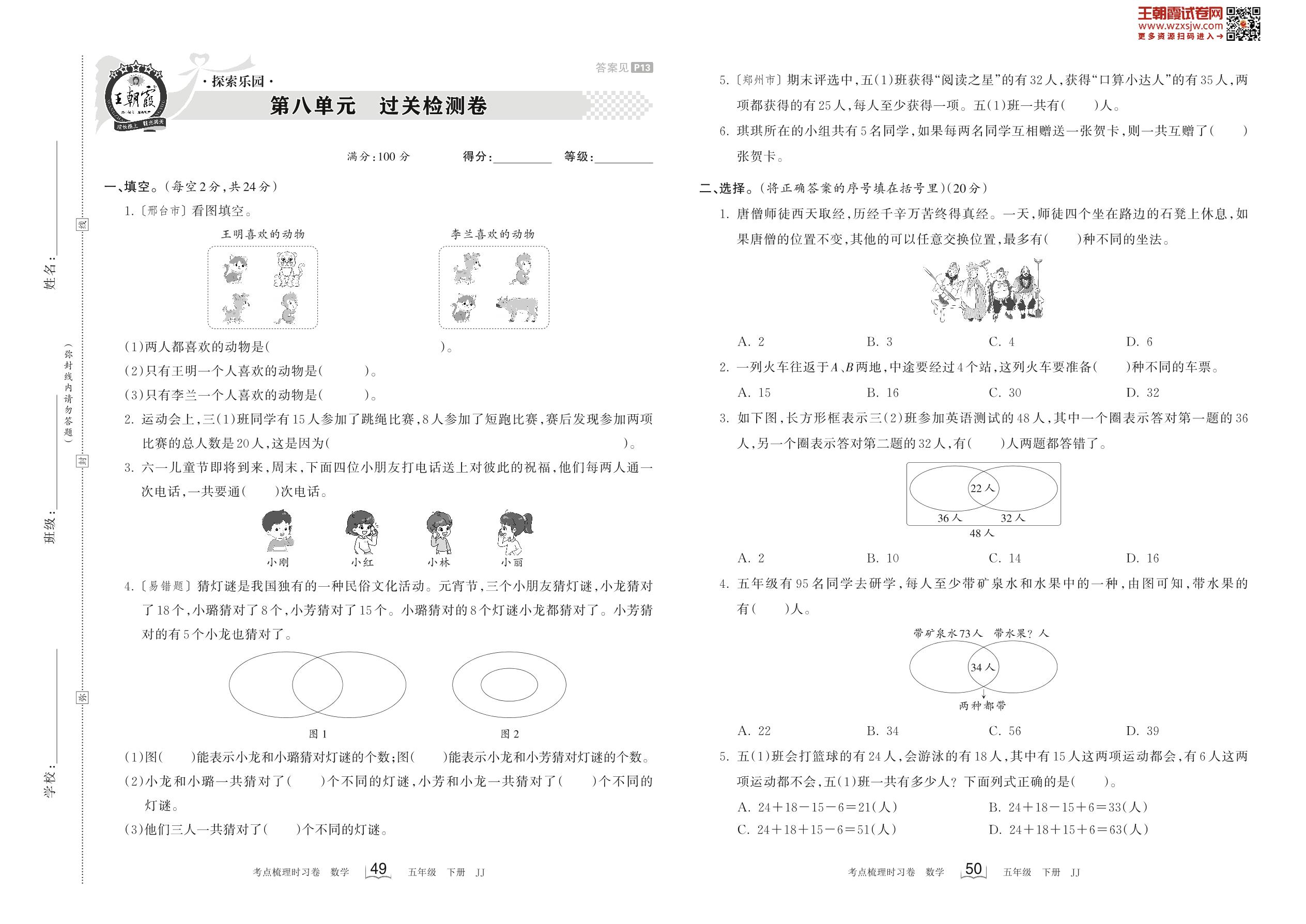 2023下册五年级数学冀教版 第八单元 过关检测卷