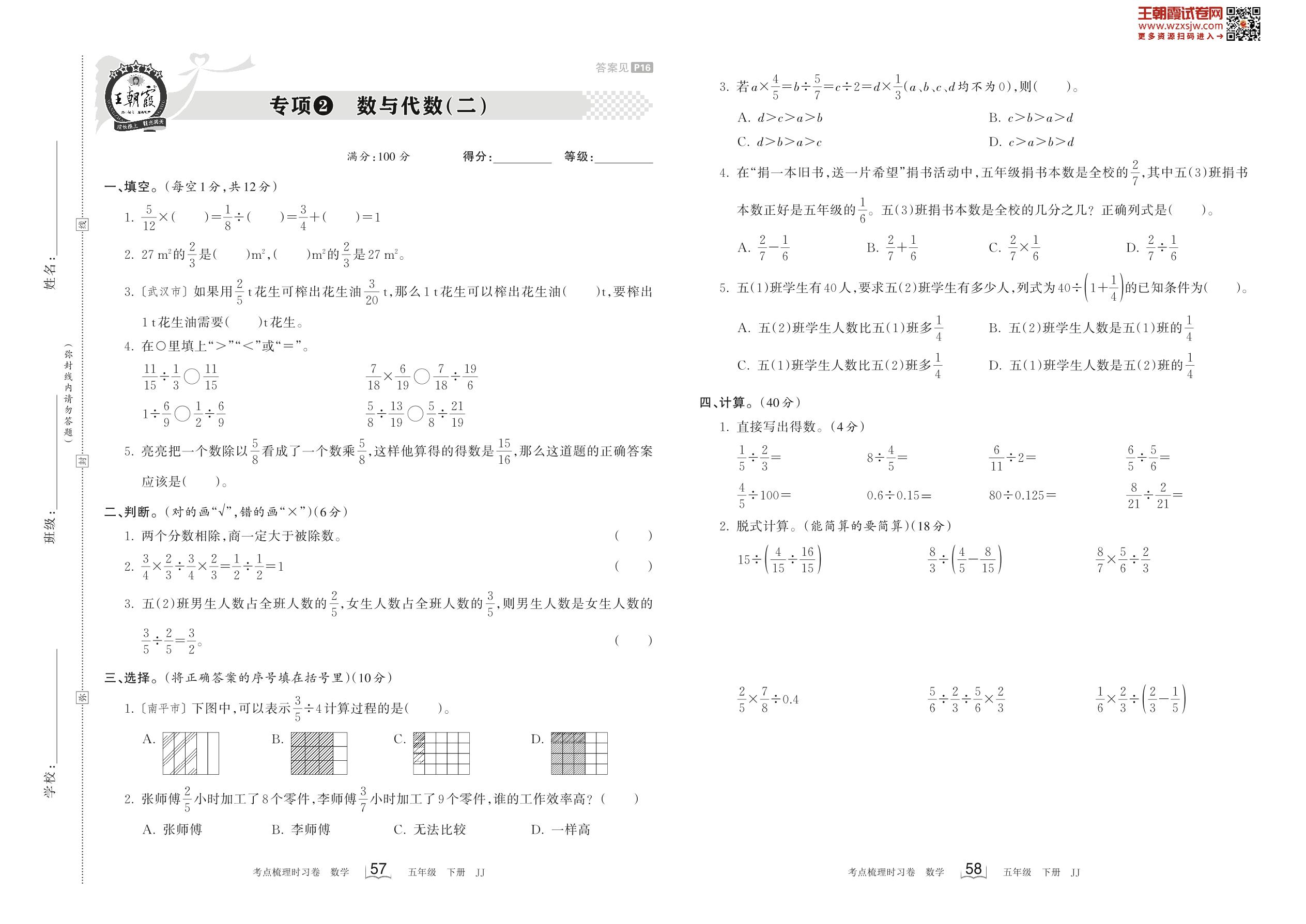 2023下册五年级数学冀教版 专项2 数与代数(二)
