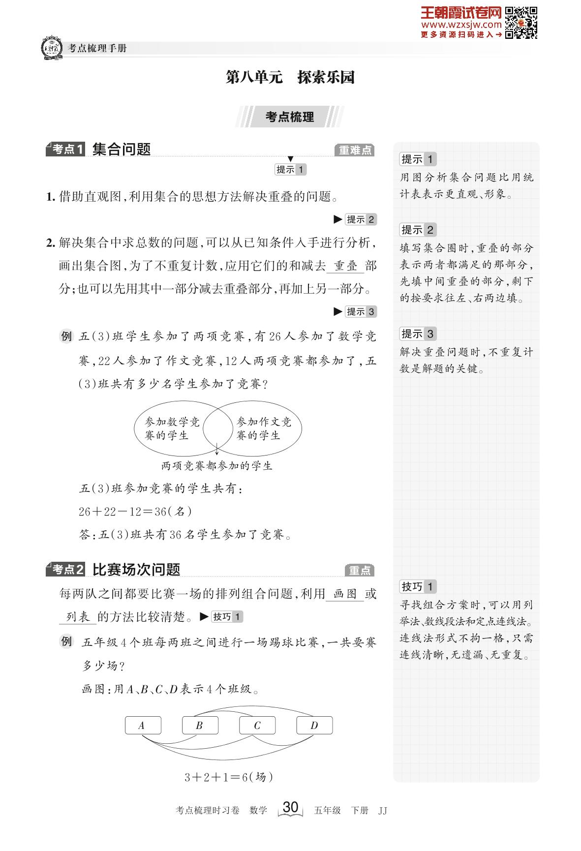 2023下册五年级数学冀教版 考点梳理手册——第八单元 探索乐园