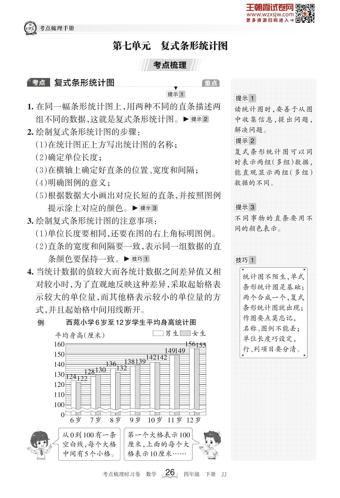 2023下册四年级数学冀教版 考点梳理手册——第七单元 复式条形统计图