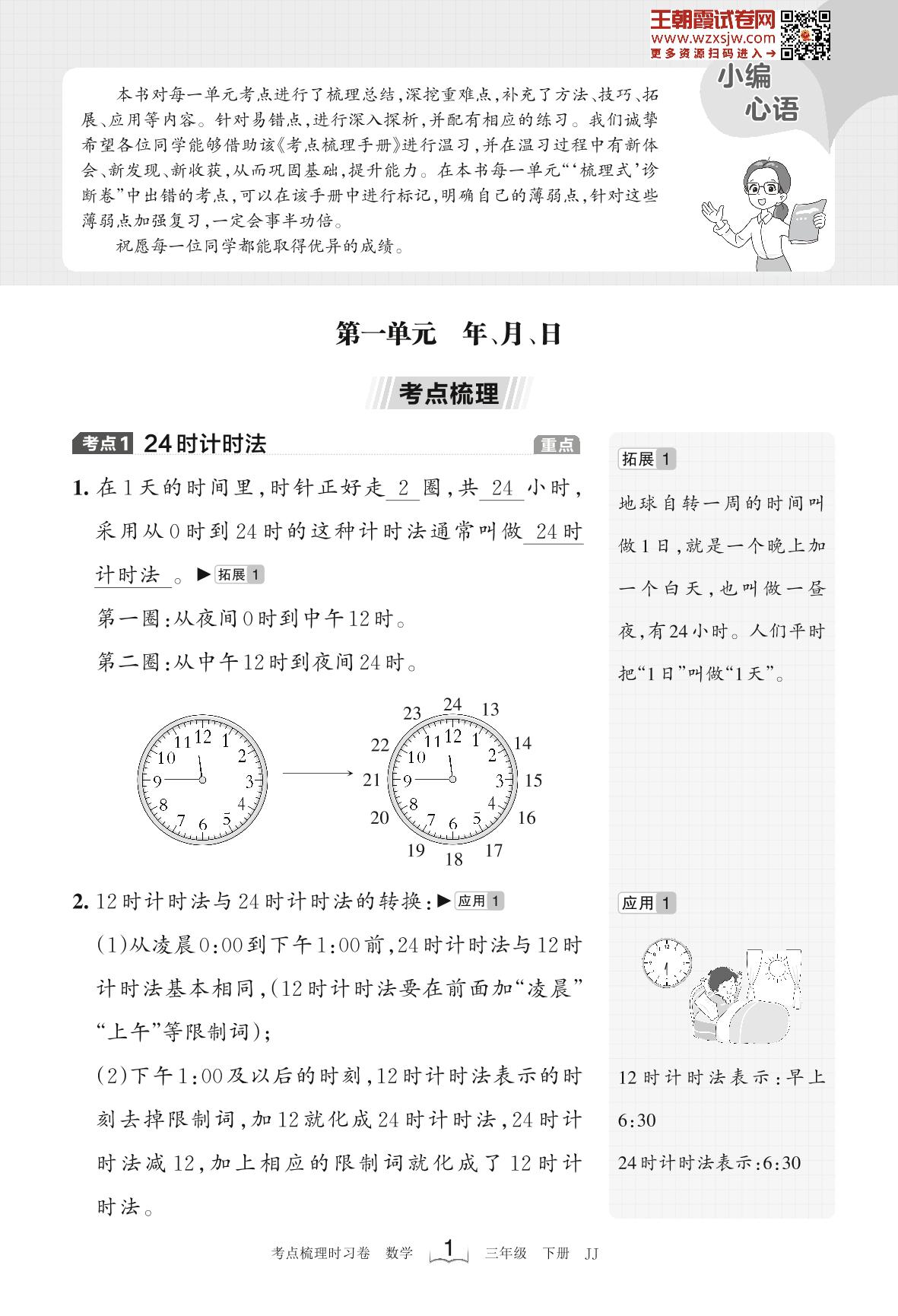 2023下册三年级数学冀教版 考点梳理手册——第一单元 年、月、日