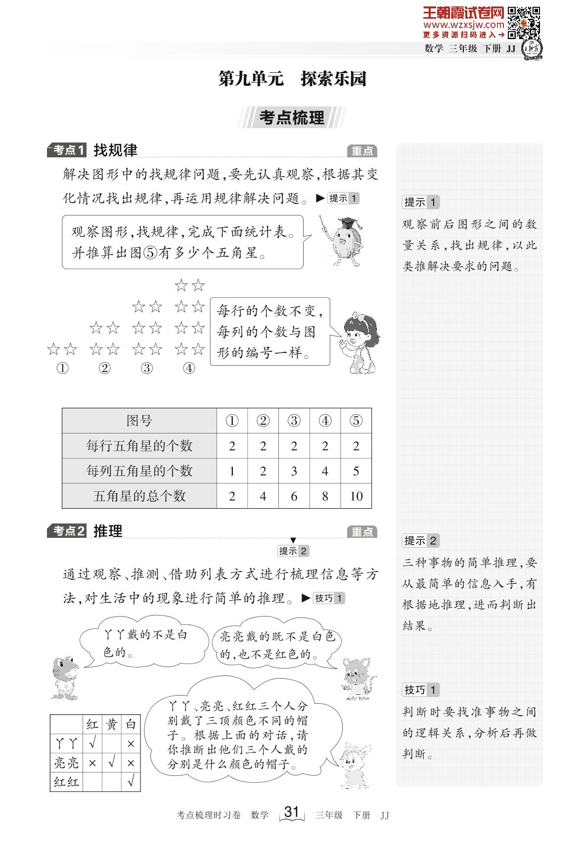 2023下册三年级数学冀教版 考点梳理手册——第九单元 探索乐园