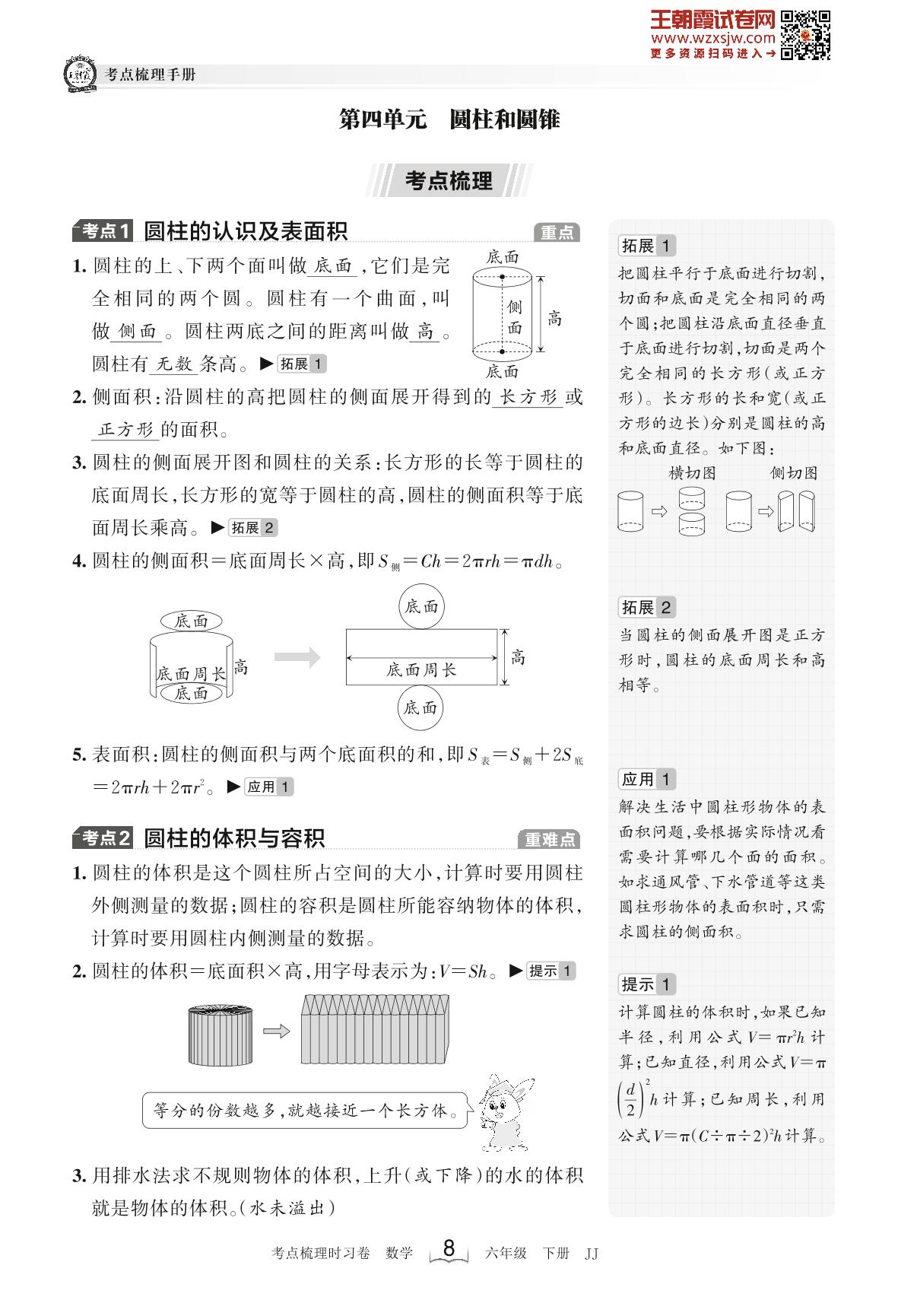 2023下册六年级数学冀教版 考点梳理手册——第四单元 圆柱和圆锥