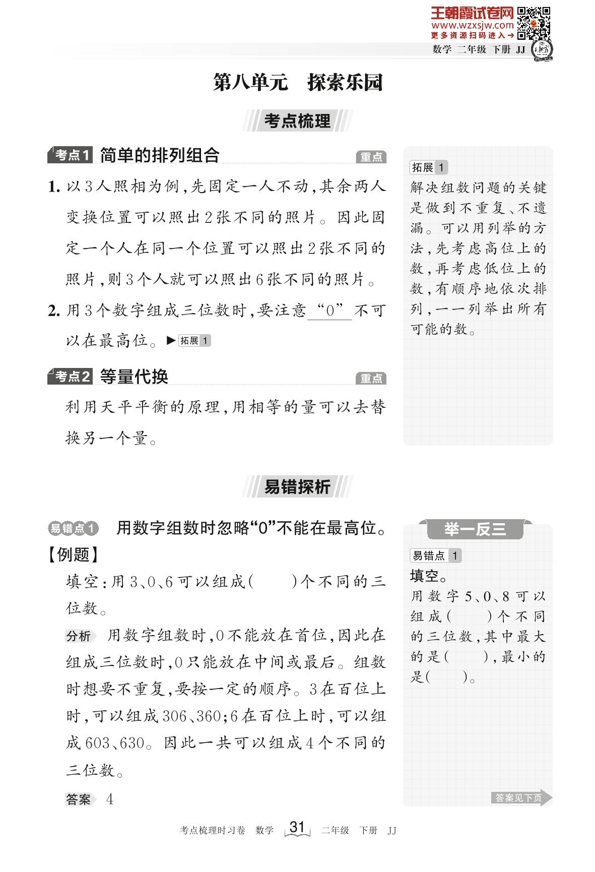 2023下册二年级数学冀教版 考点梳理手册——第八单元 探索乐园