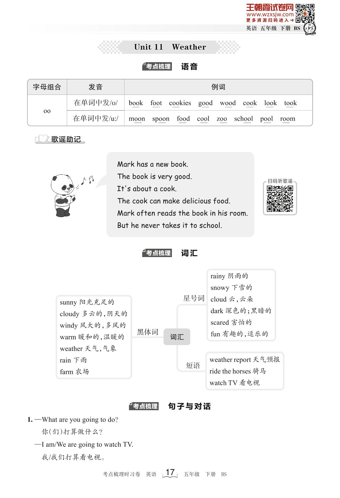 2023下册五年级英语北师版 考点梳理手册——Unit 11 Weather