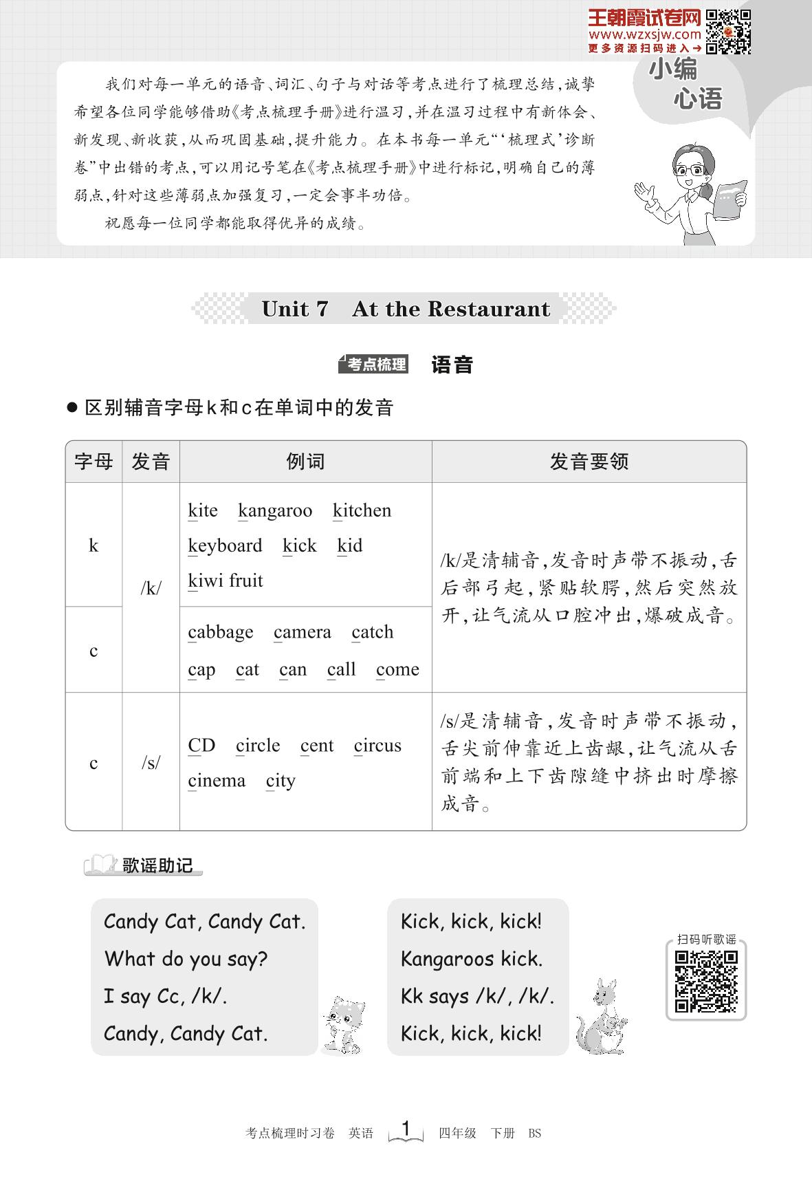2023下册四年级英语北师版 考点梳理手册——Unit 7 At the Restaurant