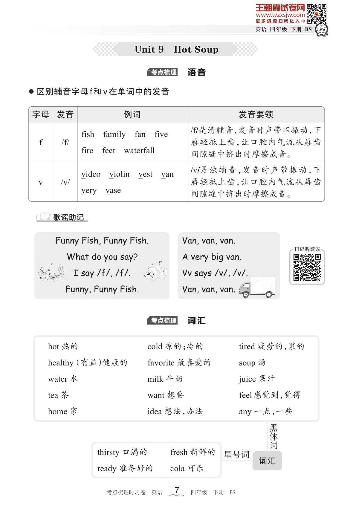 2023下册四年级英语北师版 考点梳理手册——Unit 9 Hot Soup