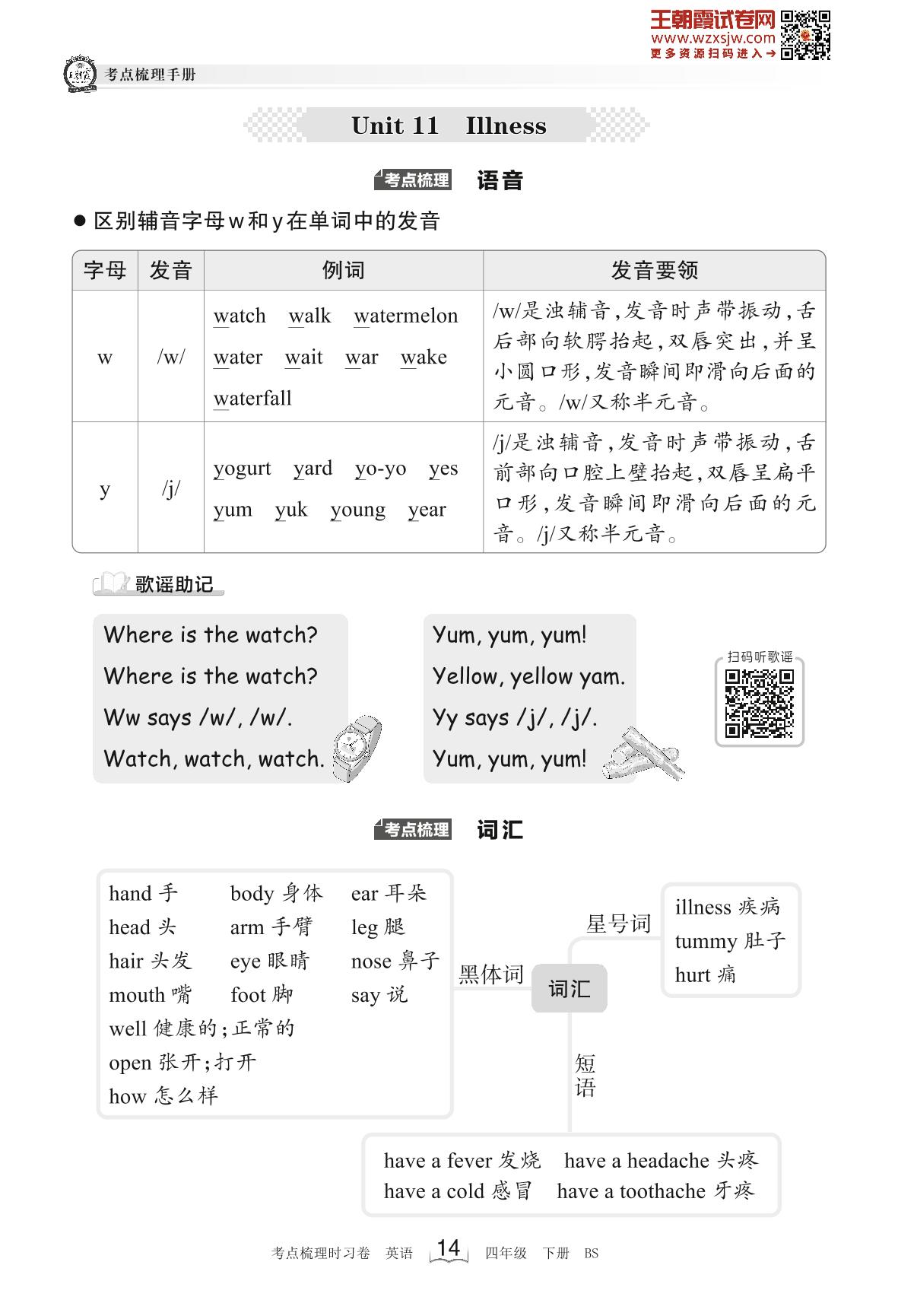 2023下册四年级英语北师版 考点梳理手册——Unit 11 Illness