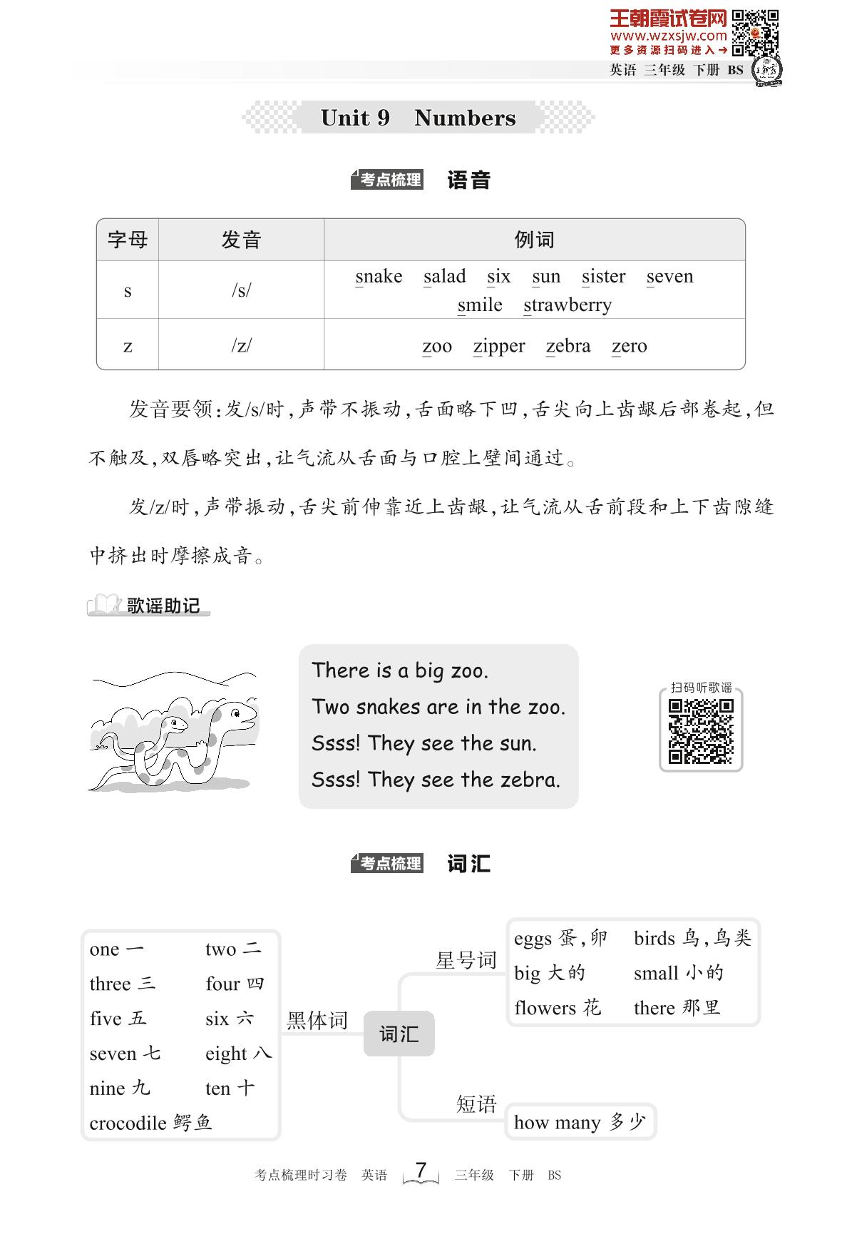 2023下册三年级英语北师版 考点梳理手册——Unit 9 Numbers